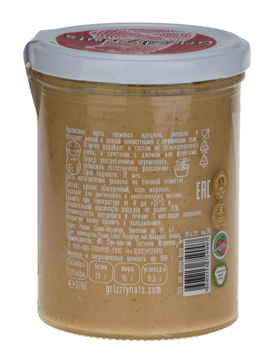 Grizzly Nuts Паста арахисовая кремовая Creamy 370 гр