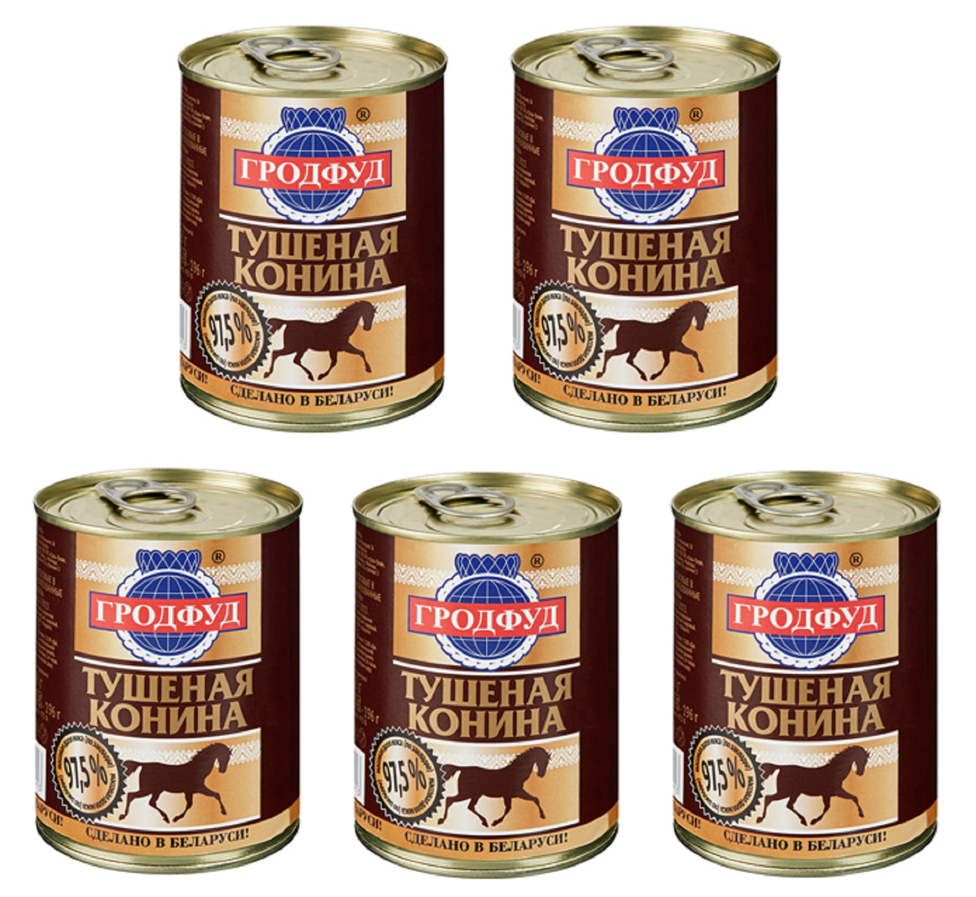 Конина тушеная Гродфуд ,97,5% мяса , 338 гр (Беларусь) Набор из 5 шт