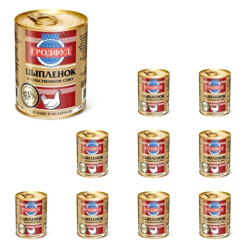 Мясо цыпленка в собственном соку 350г (набор 10шт) ГРОДФУД