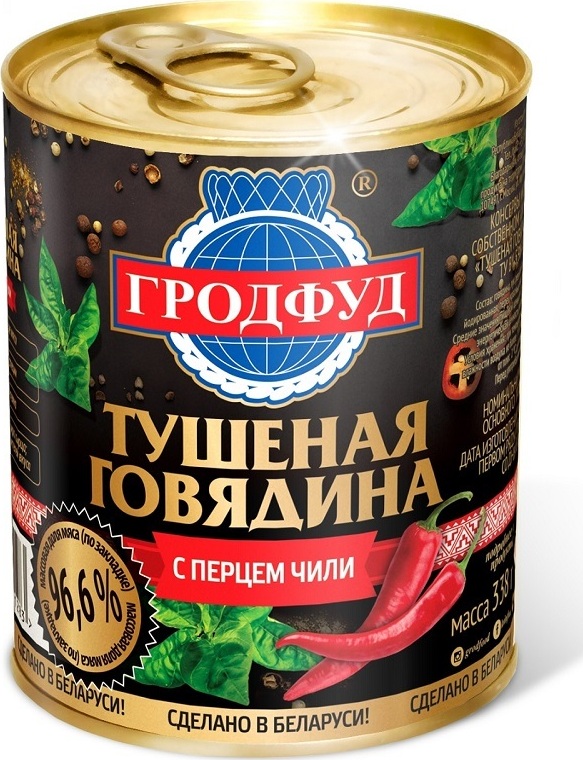 Консервы говядина тушеная с перцем чили Гродфуд, 338 гр
