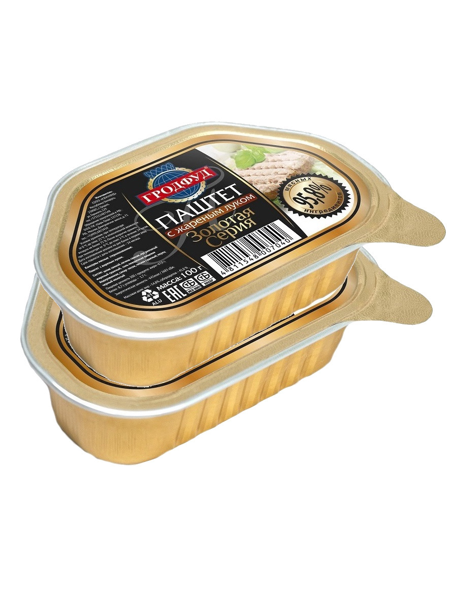 Консервы паштет с жареным луком 95,8% мясных ингредиентов Гродфуд, 2 шт. по 100 гр