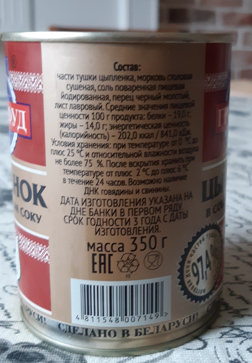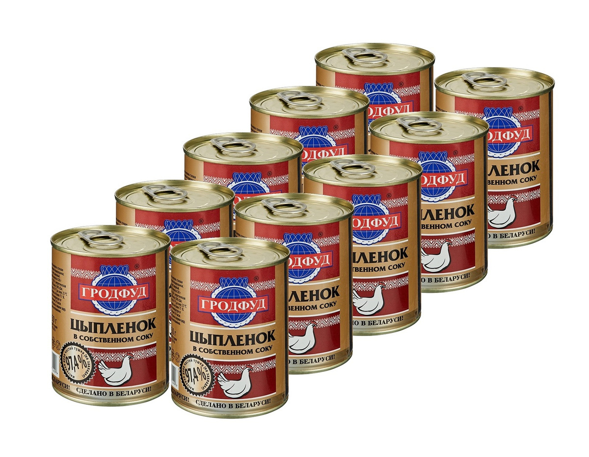 Мясо цыпленка в собственном соку 350г (набор 10шт) ГРОДФУД