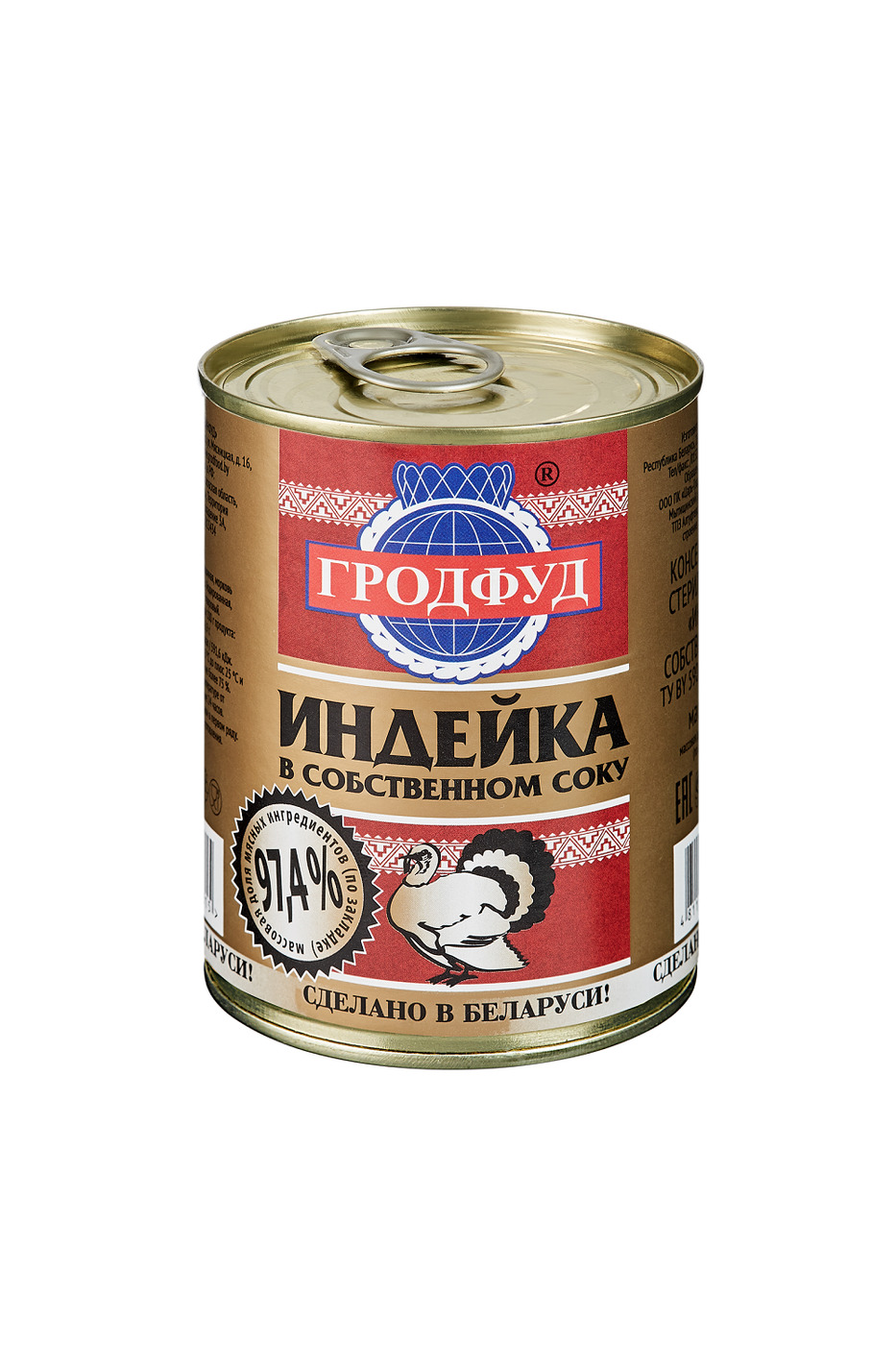 Консервы мясо индейки в собственном соку без кости Гродфуд, 338 гр