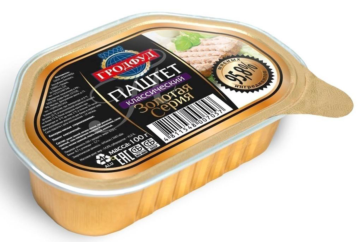 Паштет консервированный Гродфуд "Классический", мясной, стерилизованный, 100 г