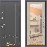 Стальная дверь Groff T2-220 Антик Серебро/Cappuccino Crosscut (дверь с зеркалом входная)