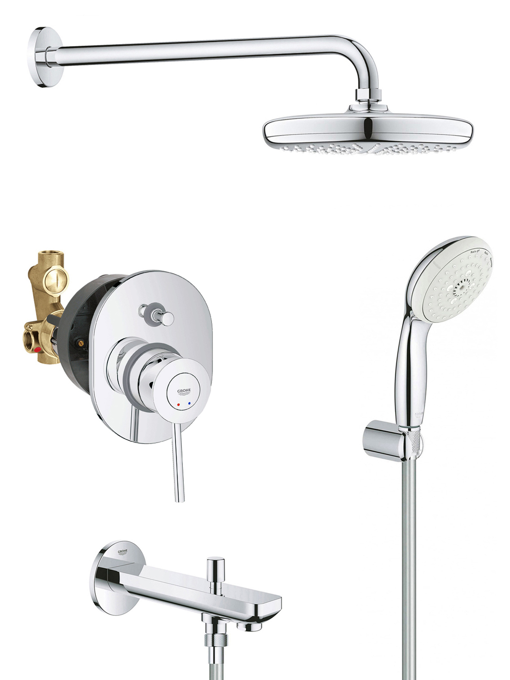 Душевая система Grohe Bau Classic с изливом для ванны, хром