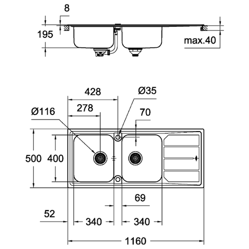 Врезная кухонная мойка Grohe K800 31583SD0