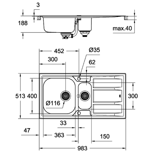 Врезная кухонная мойка Grohe K400+ 31569SD0