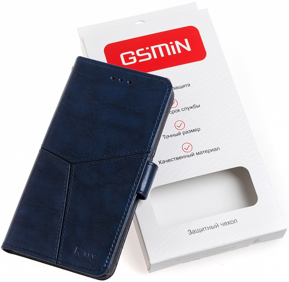 Кожаный чехол-книжка GSMIN Series Ktry для Apple iPhone XR с магнитной застежкой (Синий)