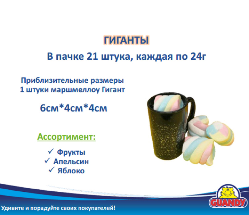 Маршмеллоу Guandy (Гуанди) ГИГАНТ косички апельсиновый 500г