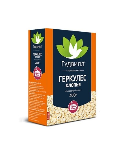 Гудвилл Хлопья Овсянные Геркулес с овсяными отрубями 380гр/3