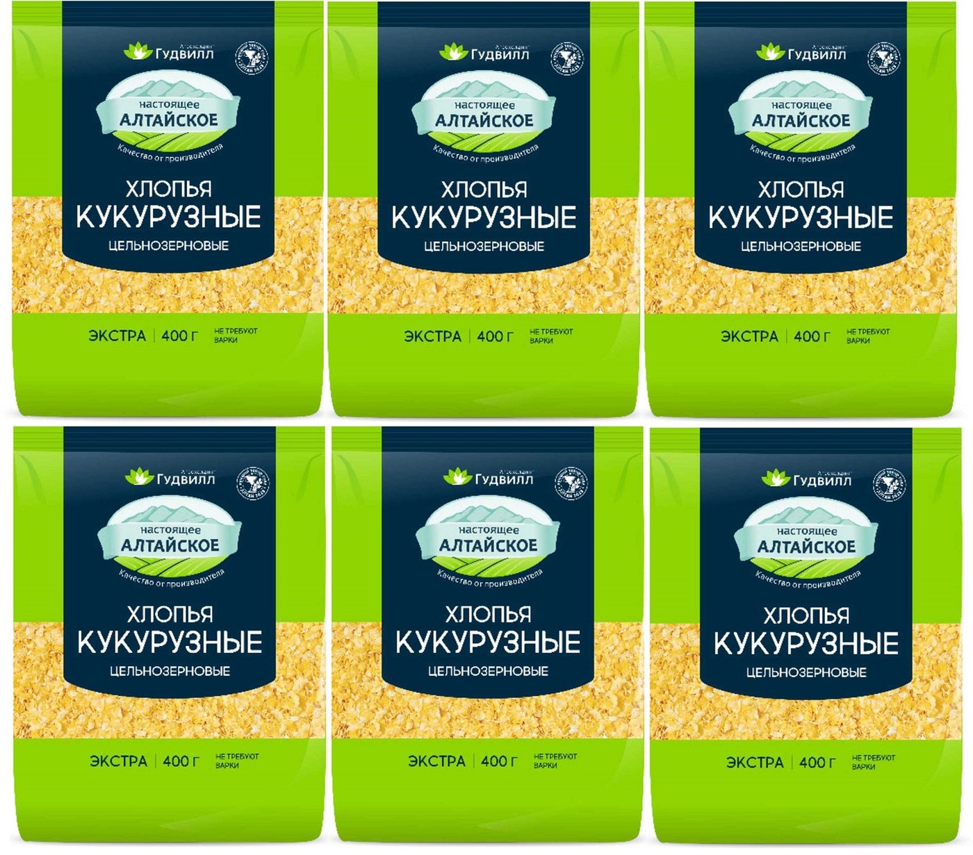 Гудвилл Хлопья Кукурузные крупяные не треб/варки "Экстра" м/у 400гр/6шт