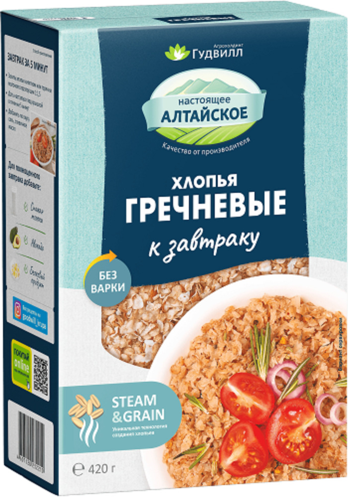 Гудвилл Хлопья Гречневые крупяные не требует варки "Экстра" 420гр/3