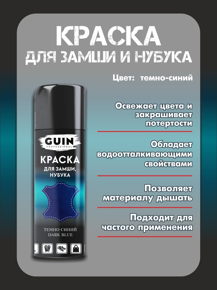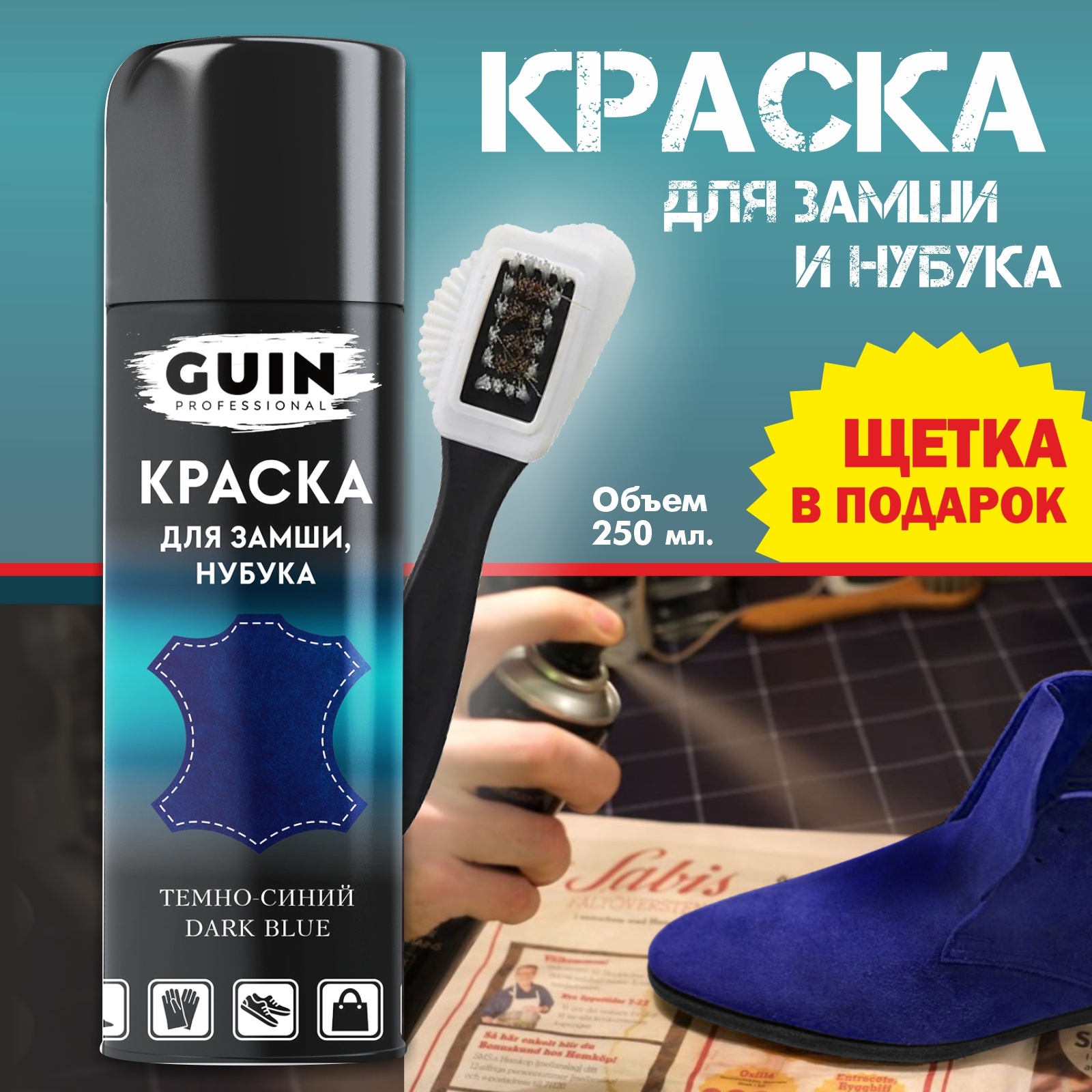 Краска для замши и нубука темно-синяя Guin 250 мл. + щетка для замши. Аэрозоль для замши и нубука