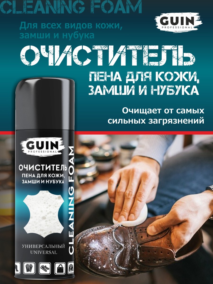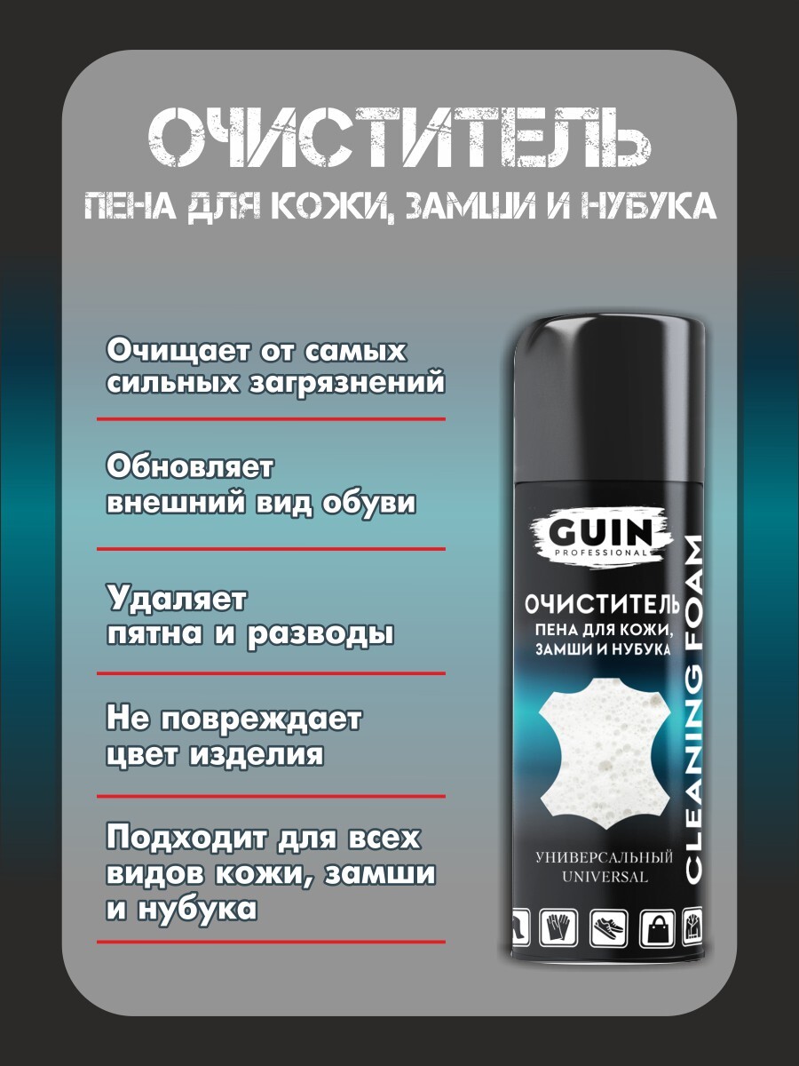 Очиститель для обуви универсальный Guin 250 мл., пена для гладкой кожи, замши и нубука