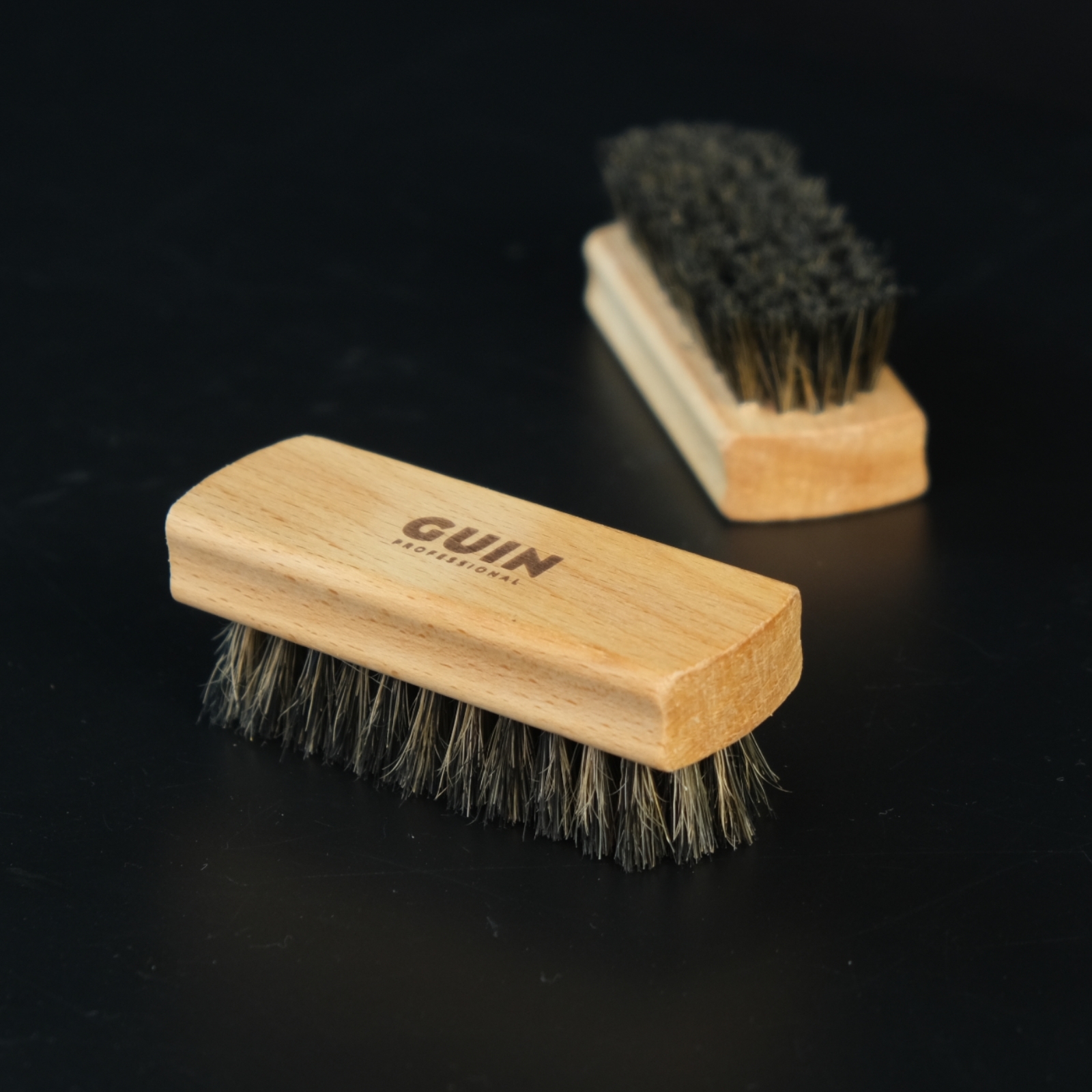 Guin Щетка для обуви Guin - мини, натуральная, темная щетина, ручка бук, 100*36*16 мм.