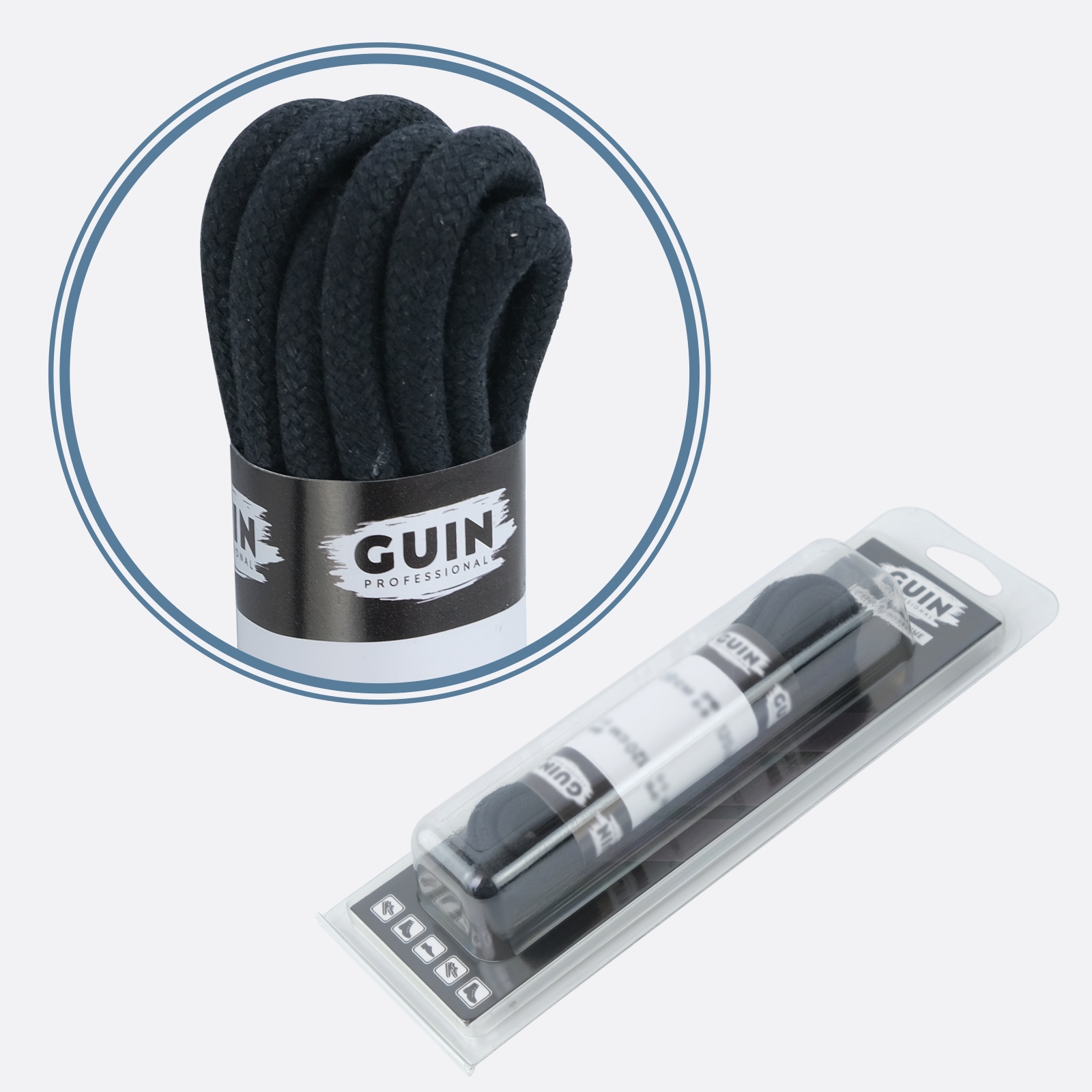 Шнурки для обуви 120 см. черные круглые толстые Guin, шнурки толстые вощенные хб.