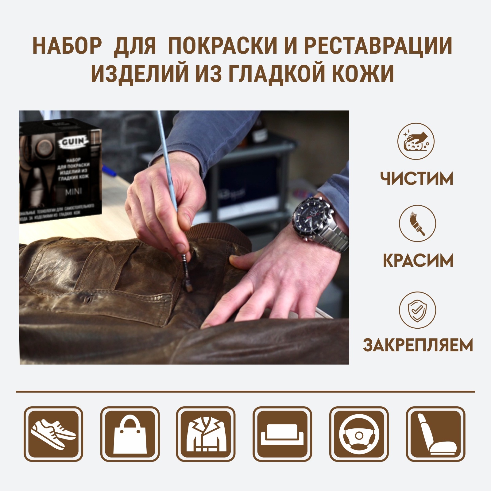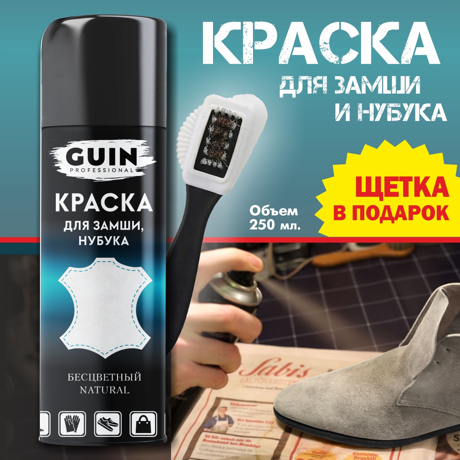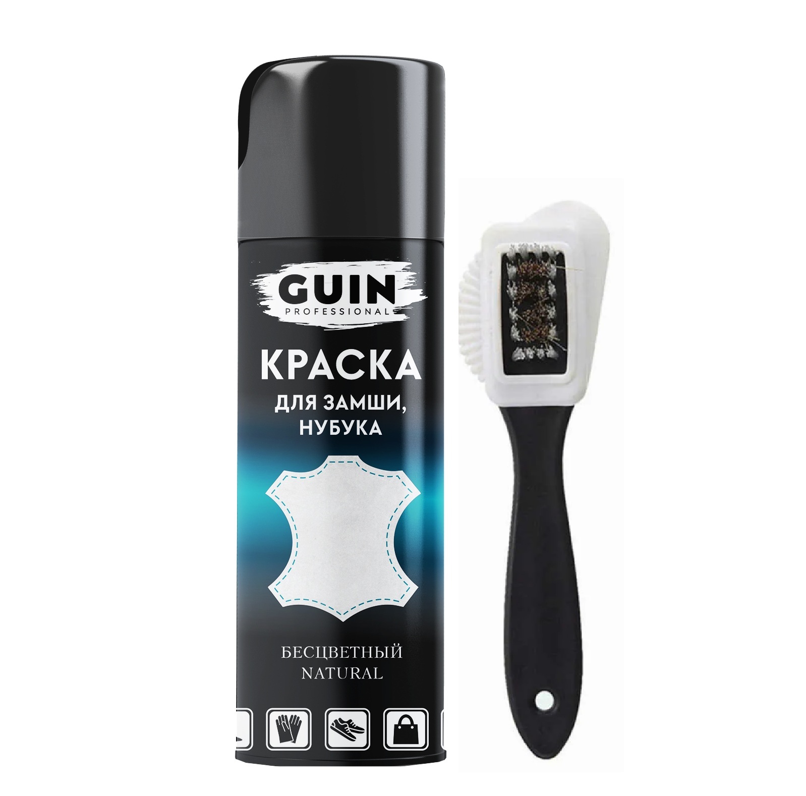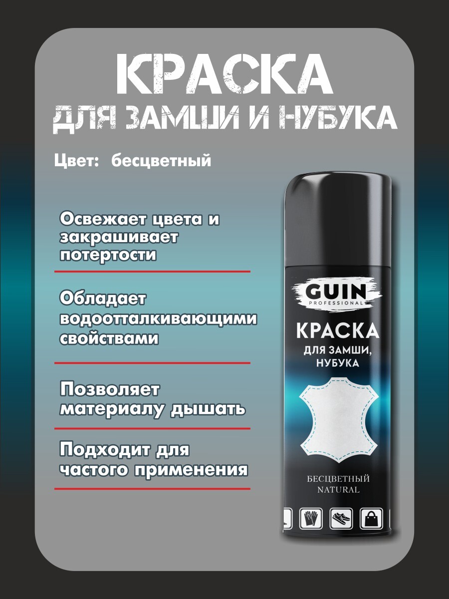 Краска для замши и нубука бесцветная Guin 250 мл. + щетка для замши.Аэрозоль для замши и нубука