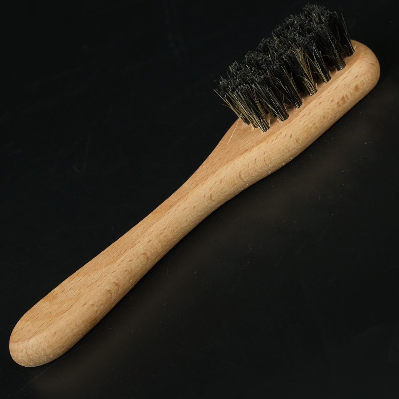 Щетка для обуви Guin - средняя, с натуральным, темным ворсом, ручка бук, 125*40*16
