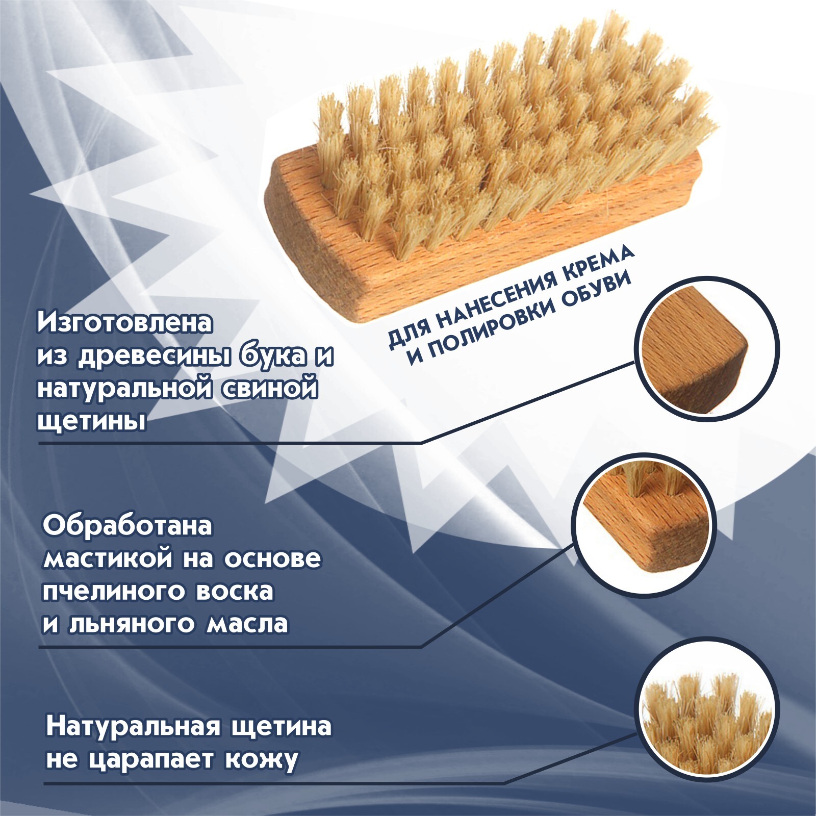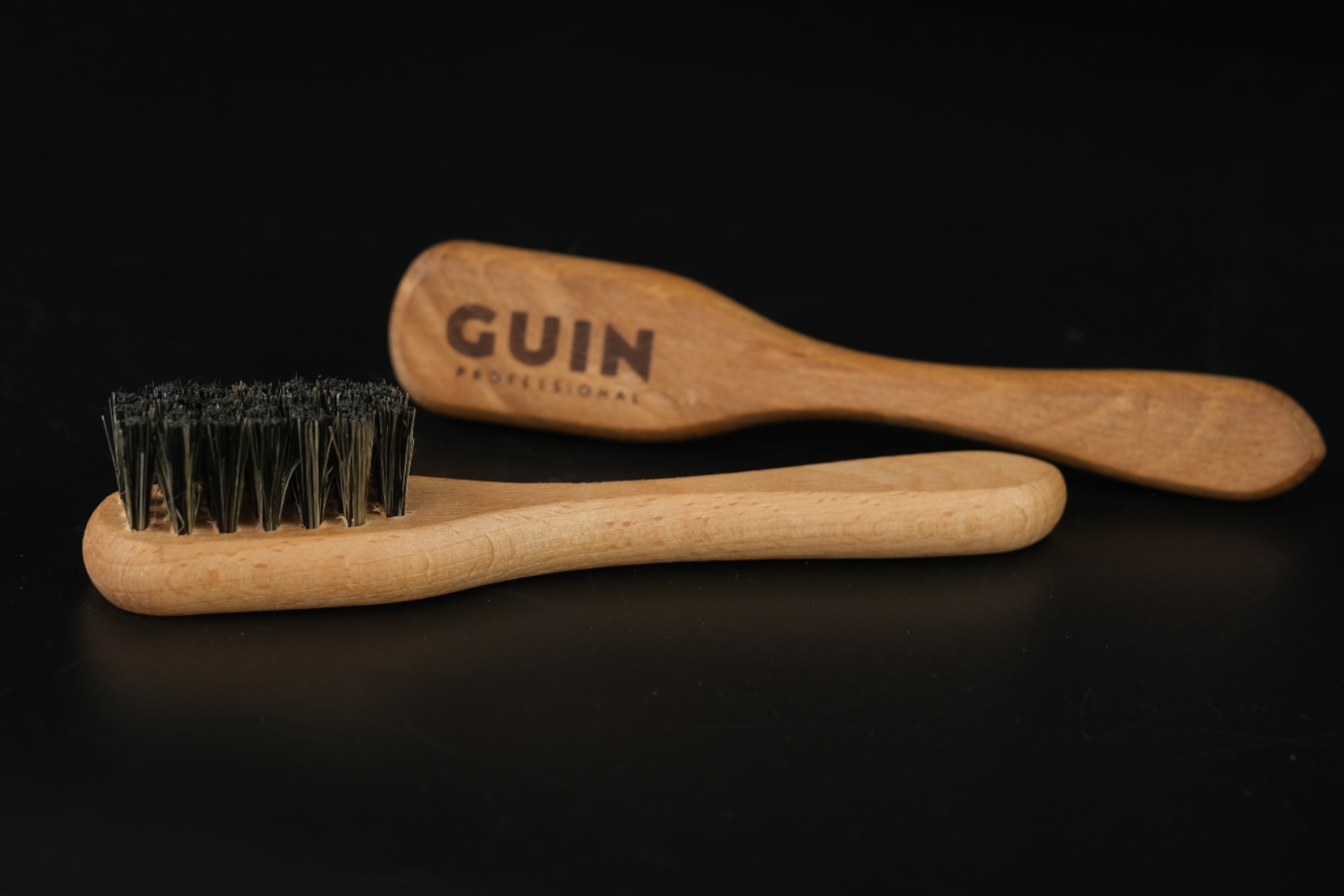Щетка намазок для обуви Guin, натуральная, темная щетина, ручка бук, 160*32*12 мм.