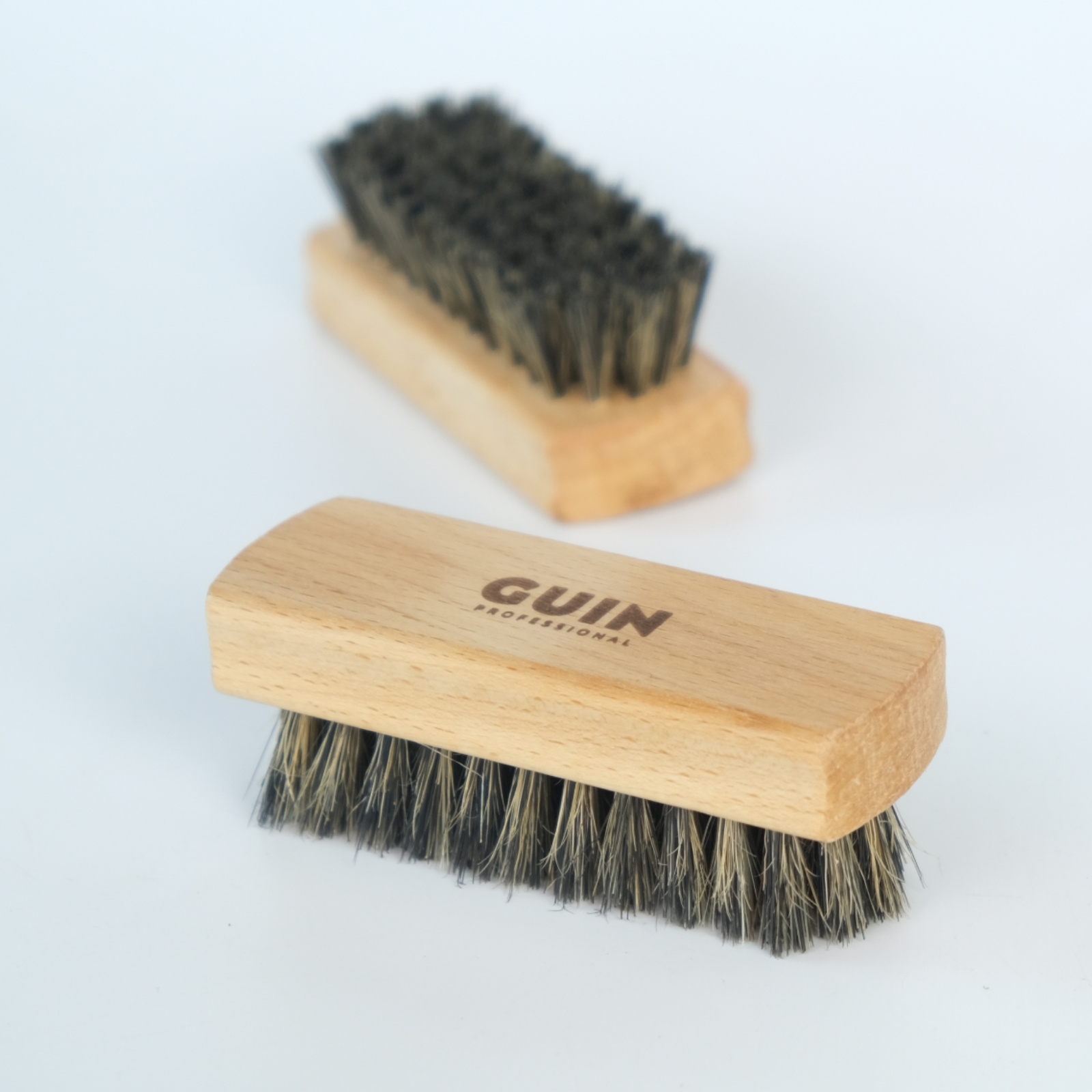 Щетка для обуви Guin-мини, натуральная светлая щетина, ручка бук, 100*36*16 мм.