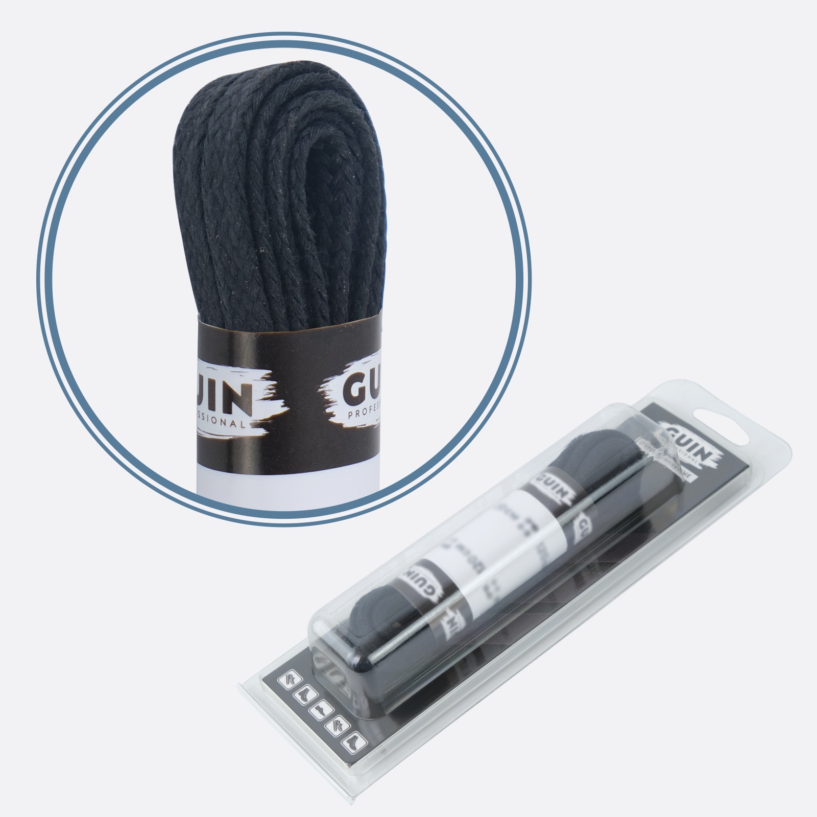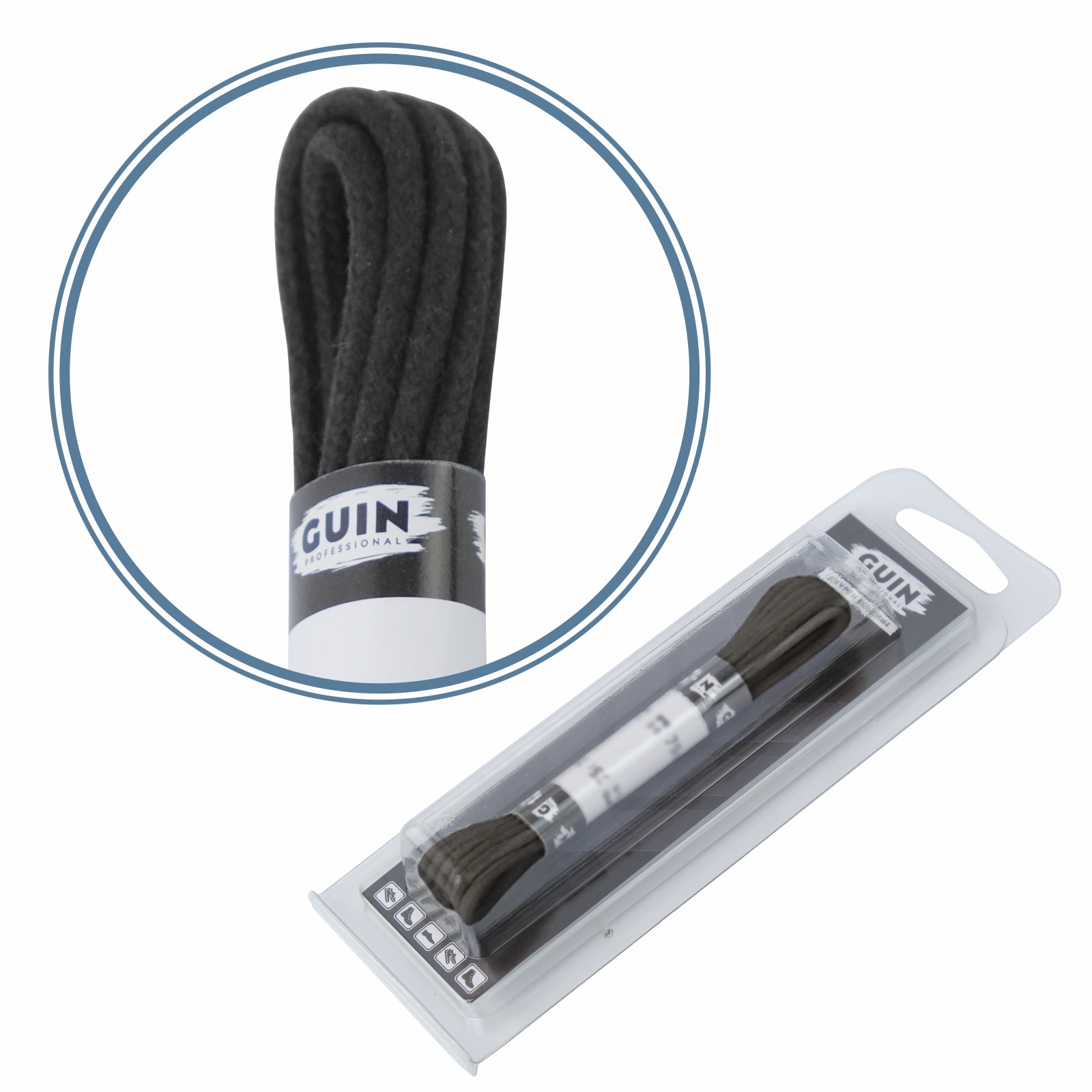 Шнурки для обуви 120 см. черные круглые толстые Guin, шнурки толстые вощенные хб.