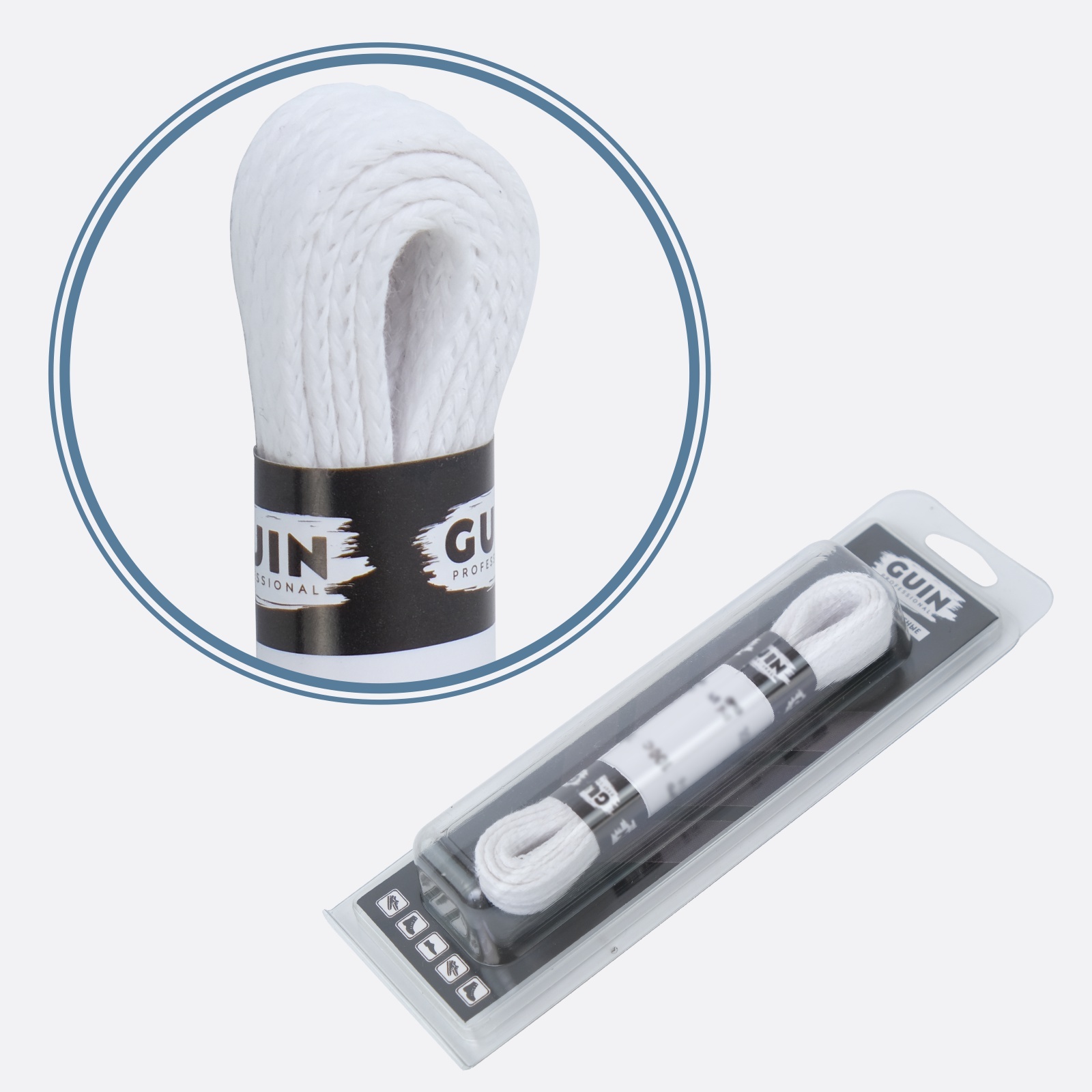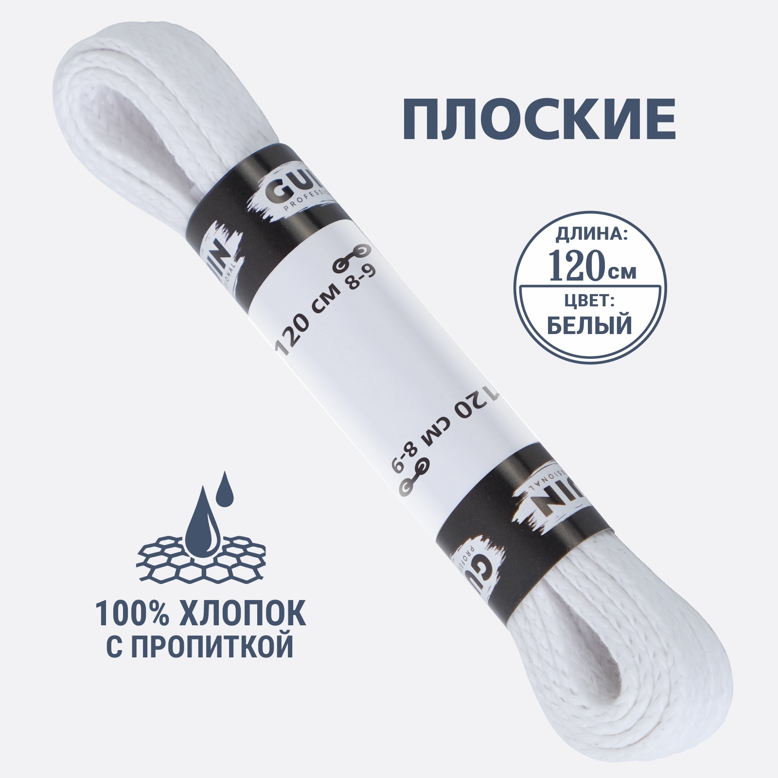 Шнурки для обуви 120 см. белые плоские Guin, шнурки вощенные хб.
