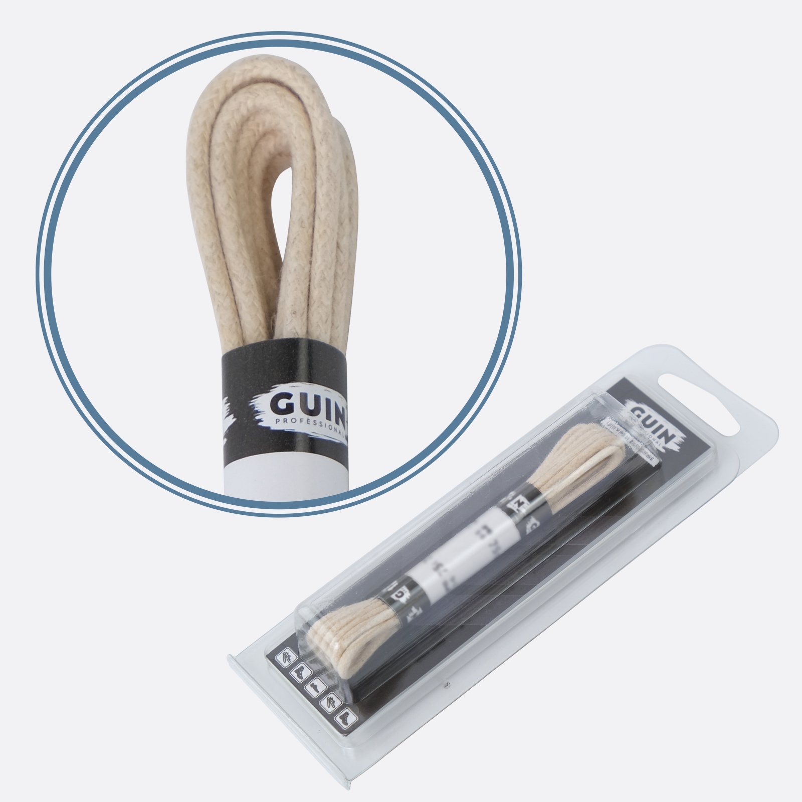 Шнурки для обуви 75 см. бежевые круглые тонкие Guin, шнурки тонкие вощенные хб.
