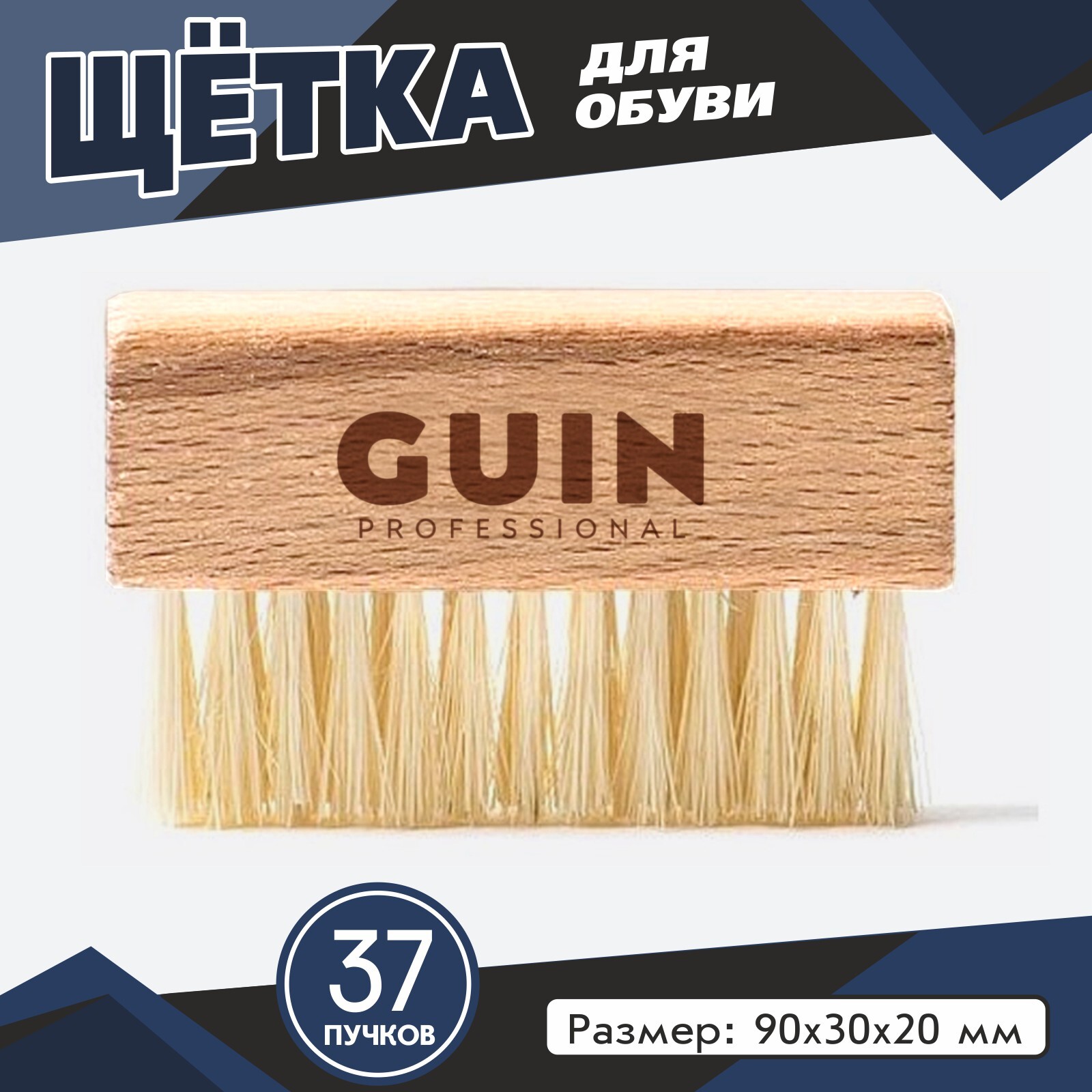 Щетка плоская для обуви Guin, натуральный светлый ворс, ручка бук, 90*30*20 мм.