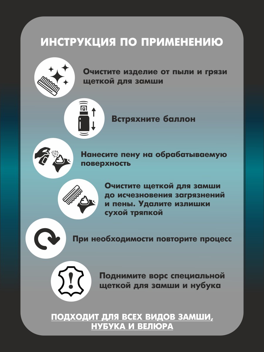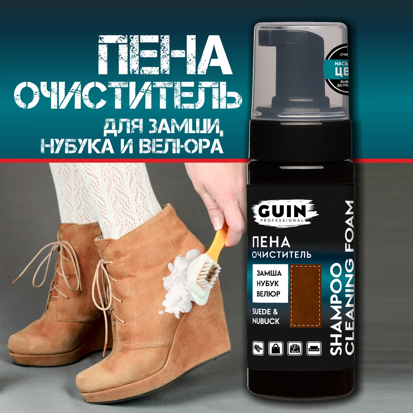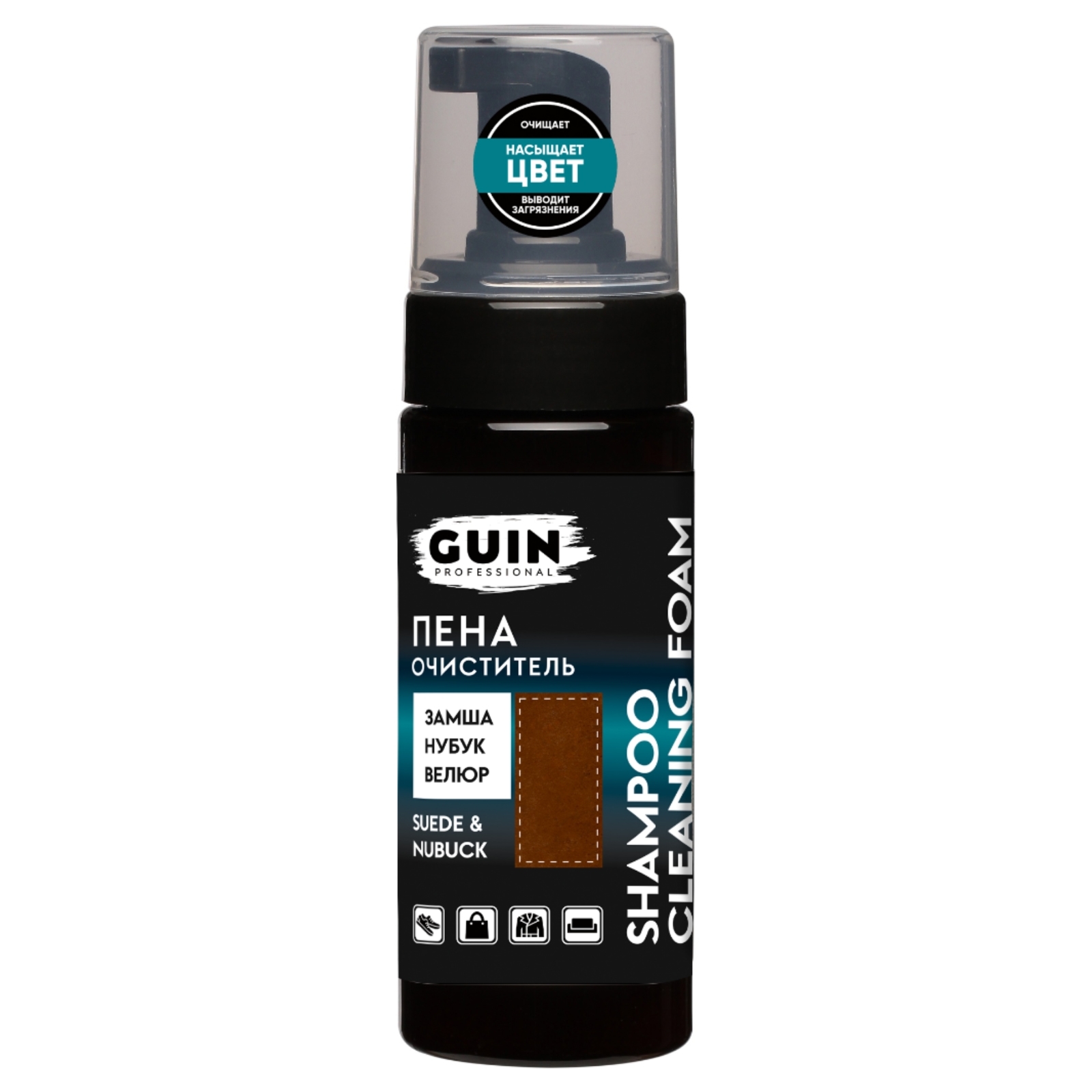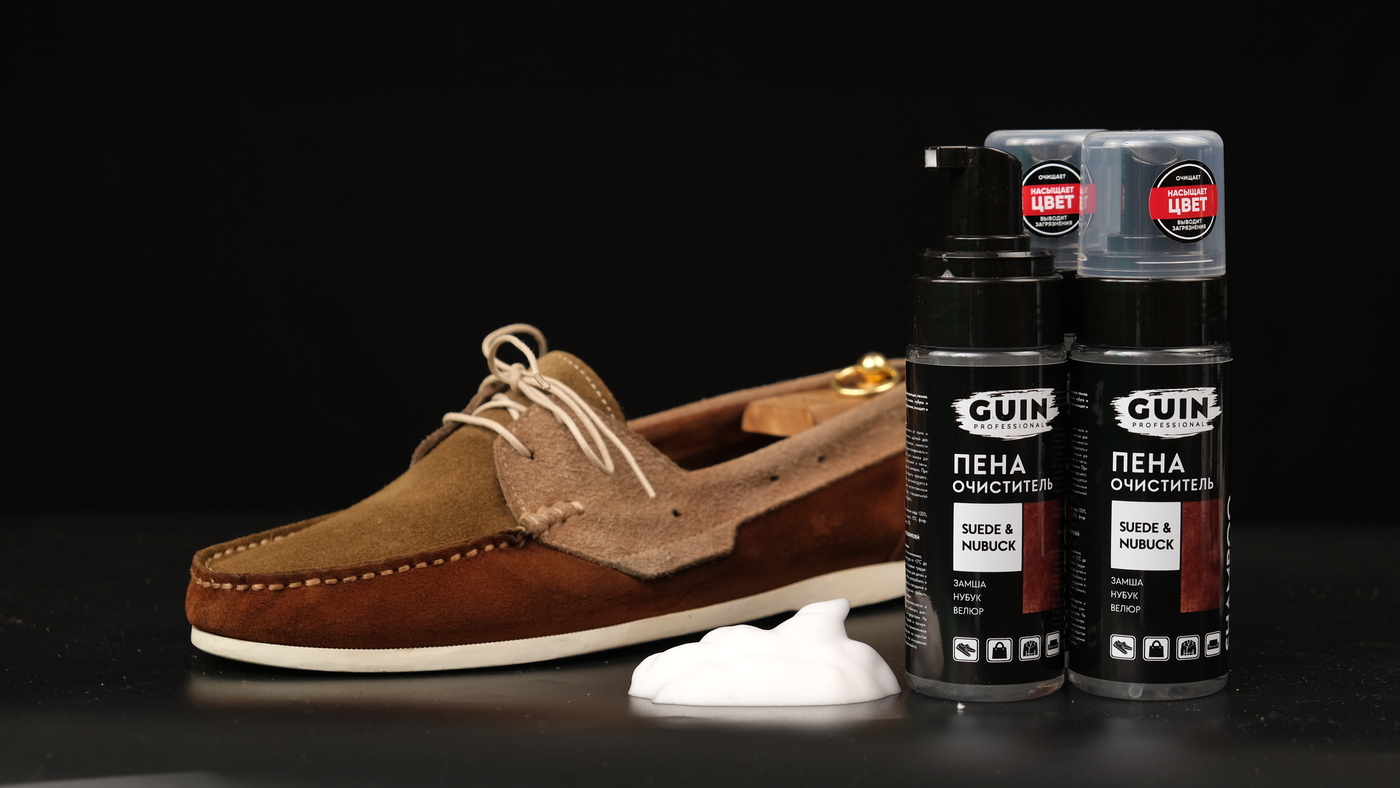 Очиститель для обуви с эффектом насыщения цвета, пена для замши, нубука и велюра 150 мл. Guin