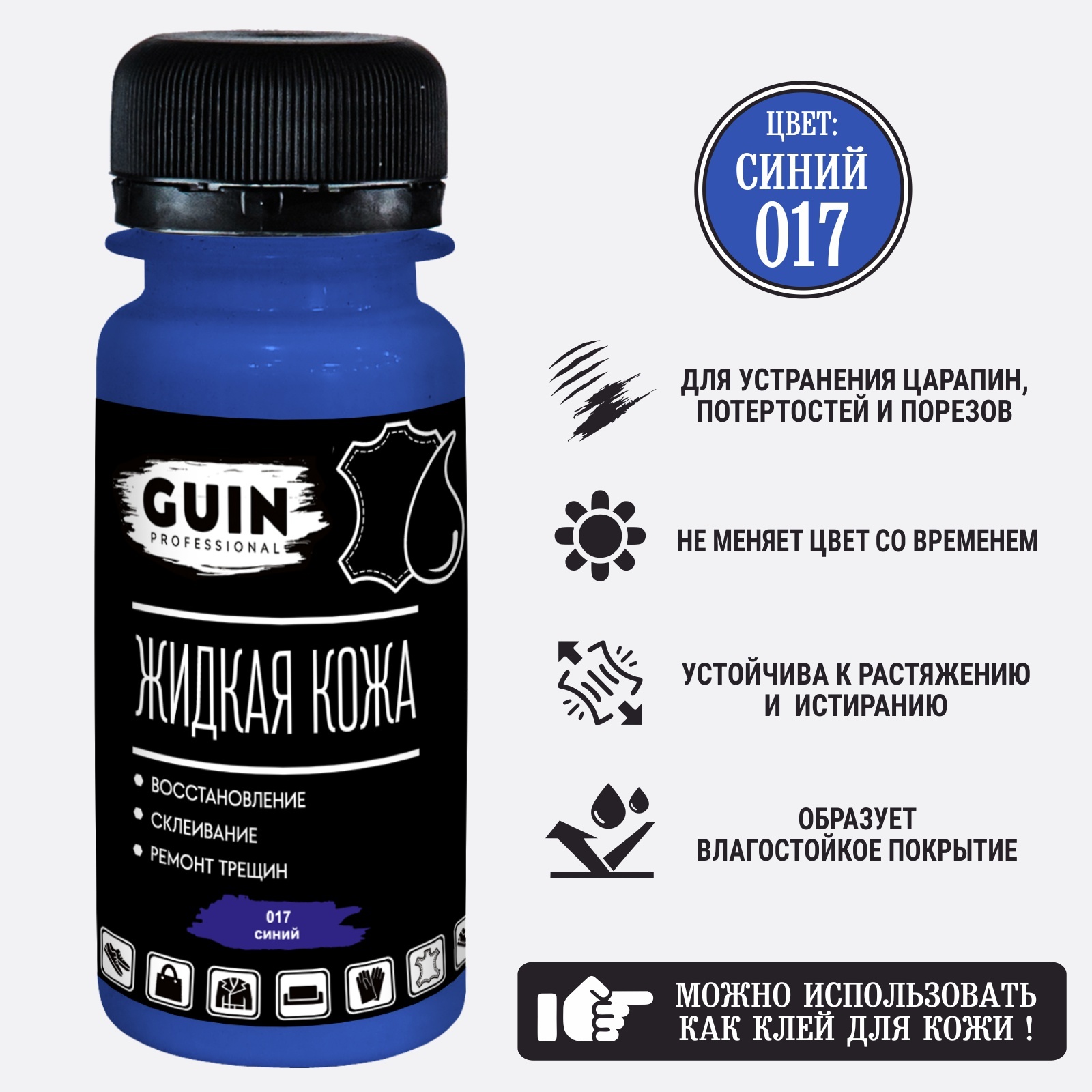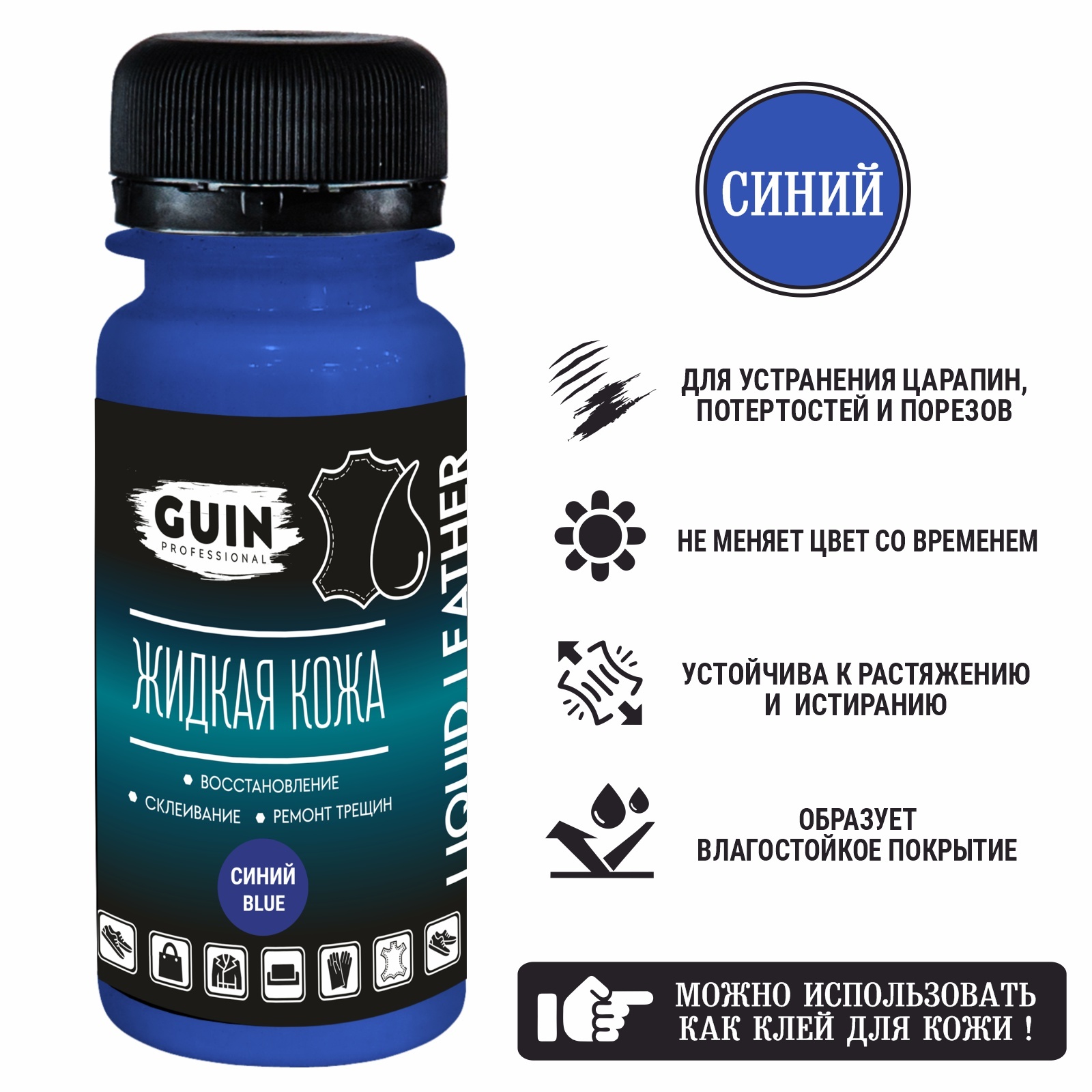 Жидкая кожа клей Guin синяя 50 мл для ремонта кожаных изделий