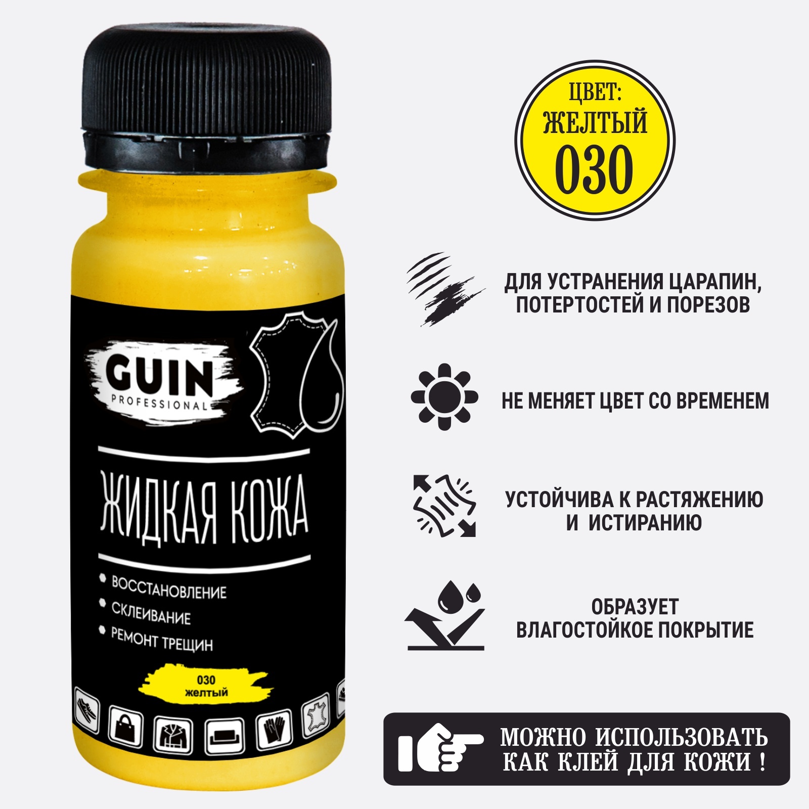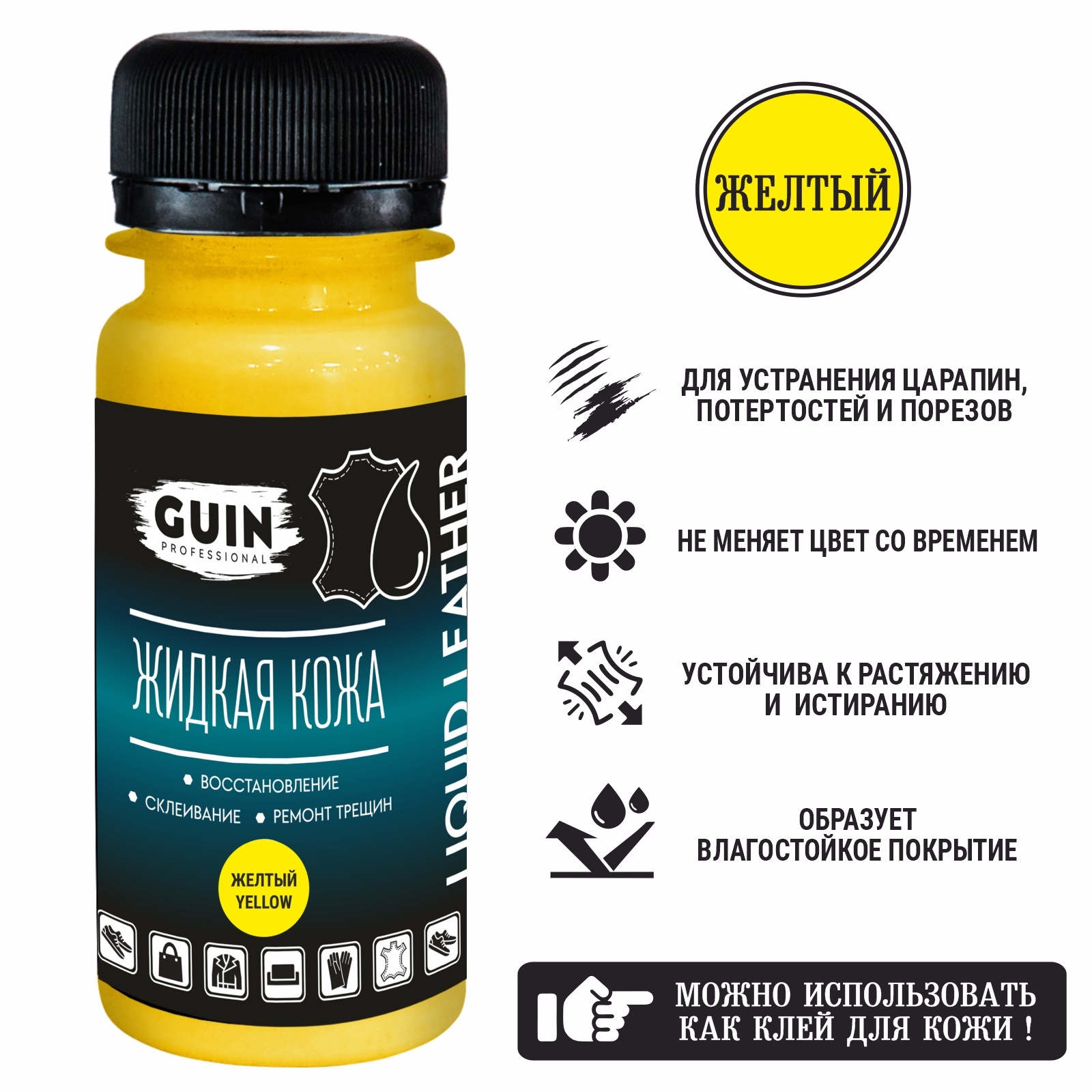 Жидкая кожа клей Guin желтая 50 мл для ремонта кожаных изделий