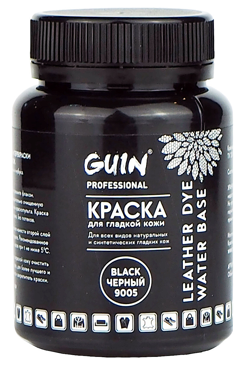 Краска для гладкой кожи Guin черная, 100 мл