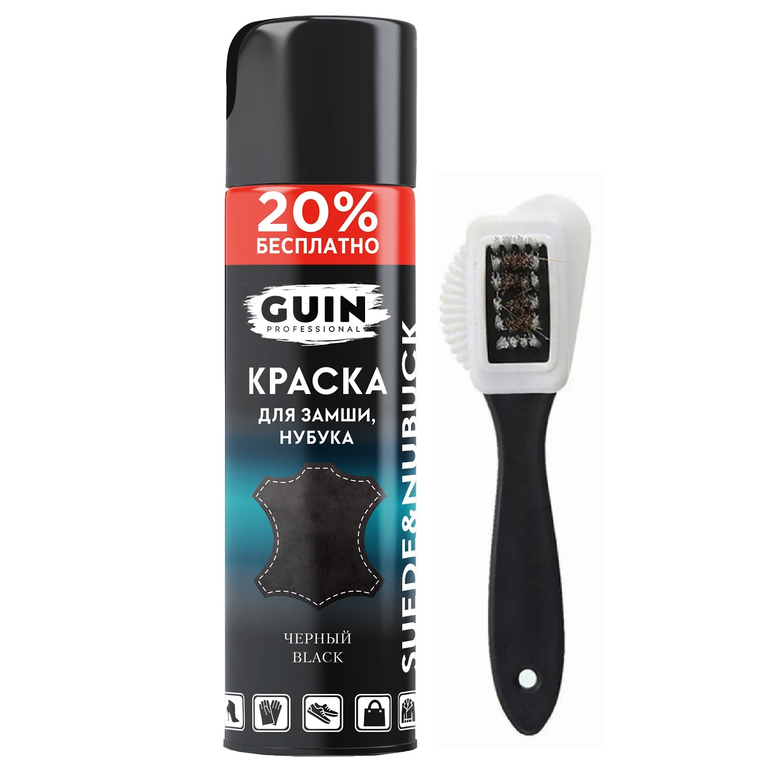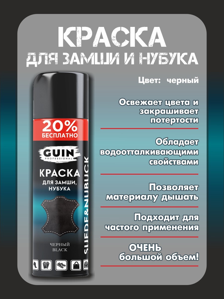 Краска для замши и нубука черная Guin 300 мл. + щетка для замши
