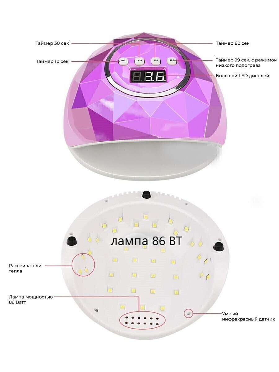 GuliCristal Лампа для маникюра 86 W фиолетовая / Лампа для сушки ногтей /Лампа для ногтей