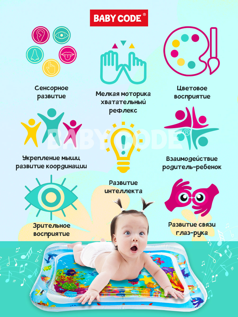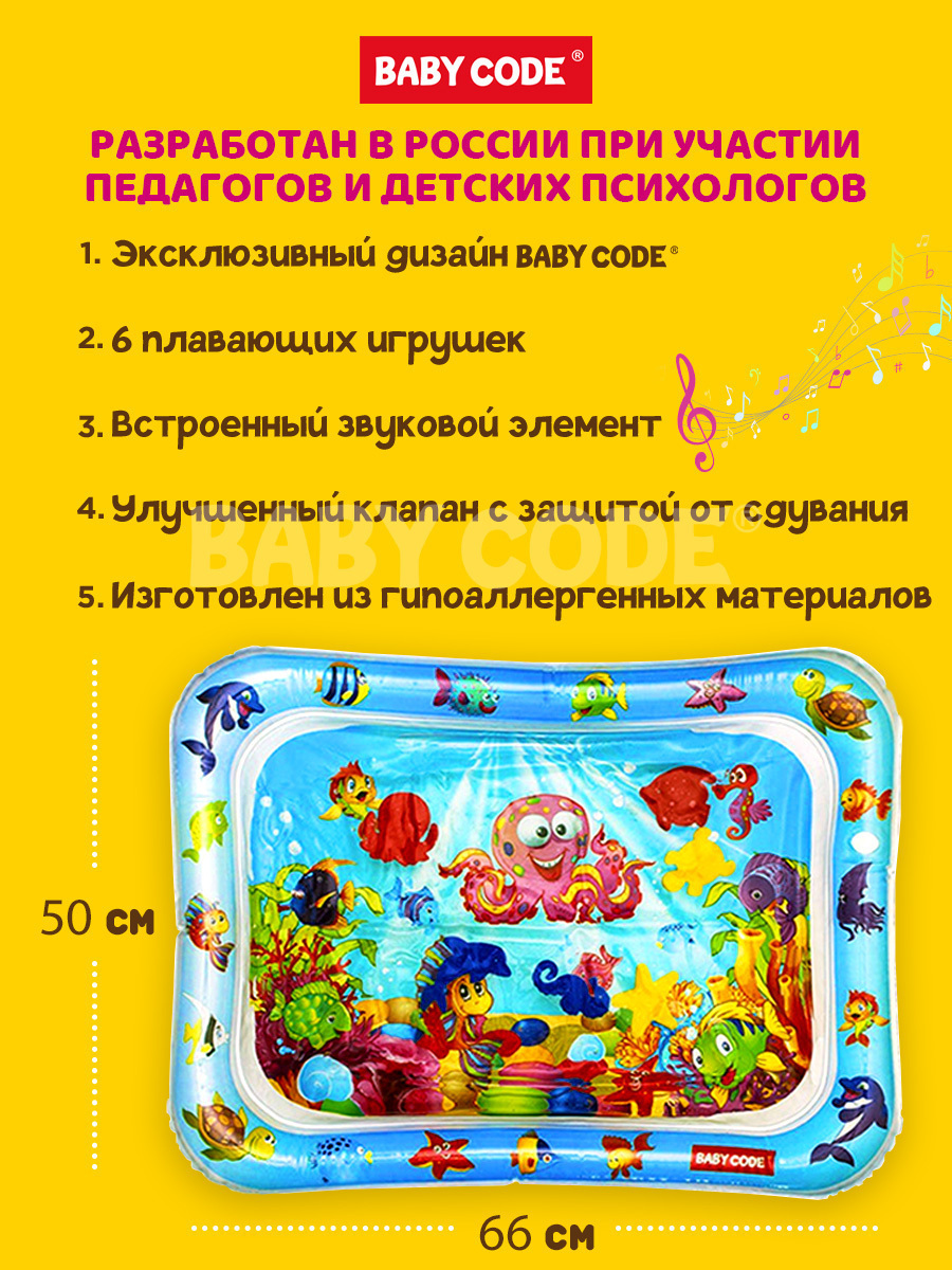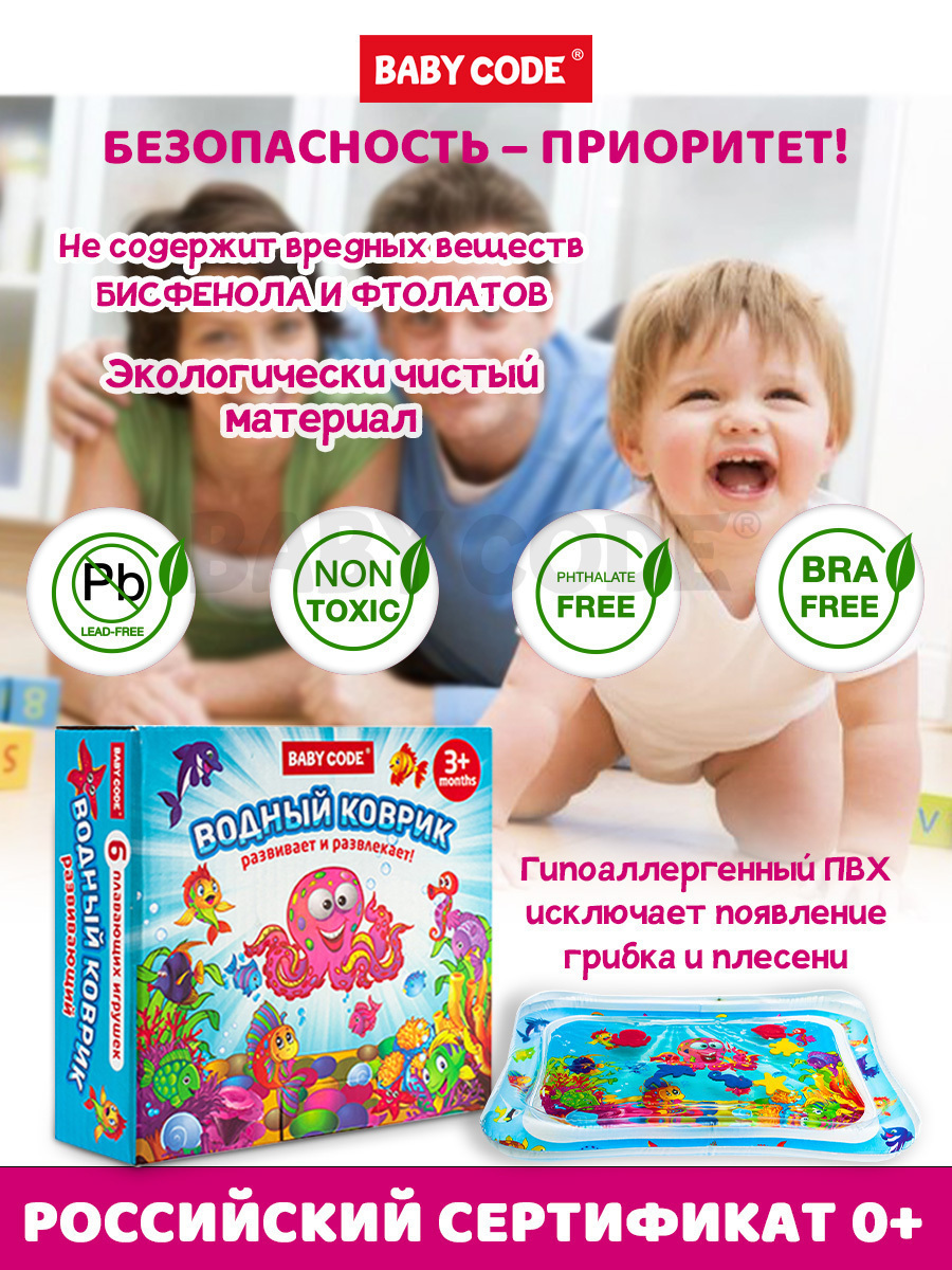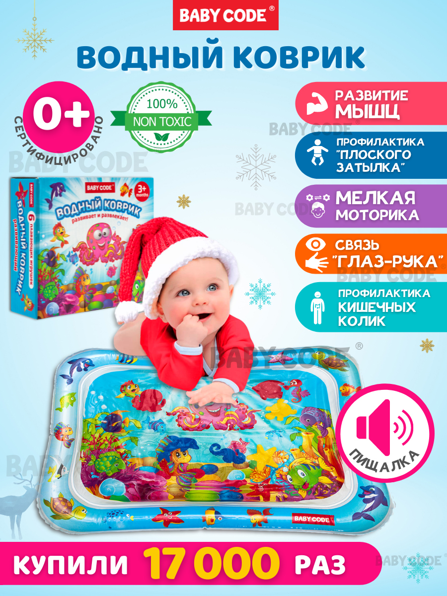 Детский игровой Развивающий водный коврик Baby Сode Осьминожек в крапинку с пищалкой