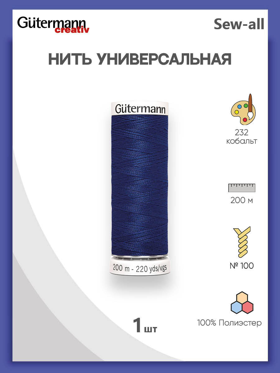 Нить Sew-all для всех материалов, 200м, 100% п/э Гутерманн (232 кобальт)