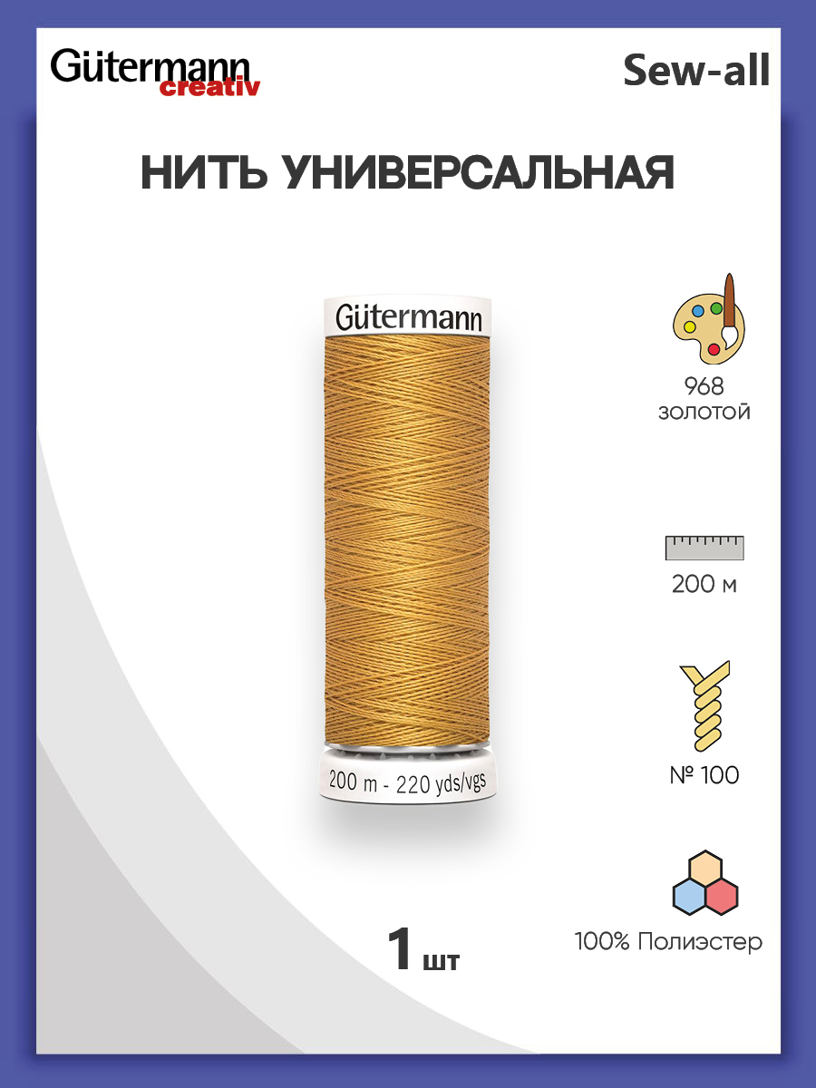 Нить Sew-all для всех материалов, 200м, 100% п/э Гутерманн (968 золотой)