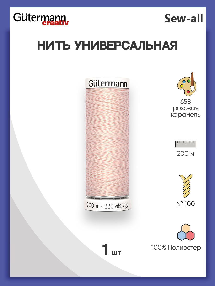Нить Sew-all для всех материалов, 200м, 100% п/э Гутерманн (658 розовая карамель)