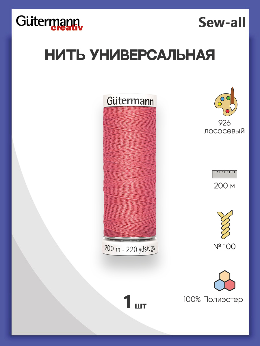 Нить Sew-all для всех материалов, 200м, 100% п/э Гутерманн (926 лососевый)
