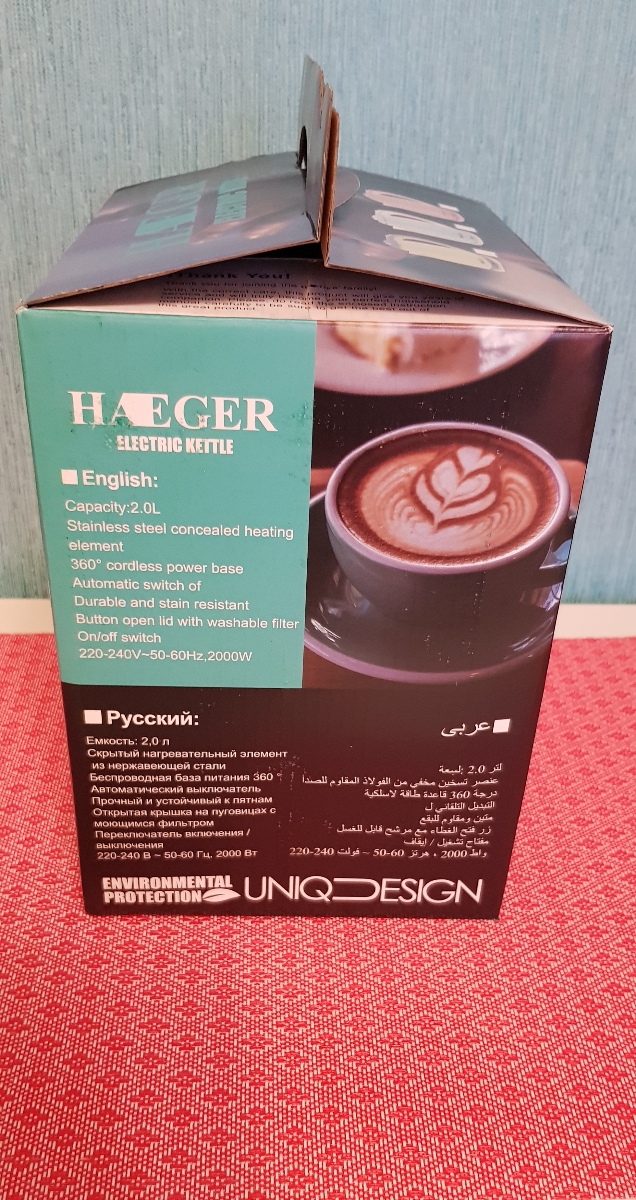 Электрический чайник HAEGER ЭЛЕКТРИЧЕСКИЙ ЧАЙНИК/ HAEGER-HG-7838, голубой