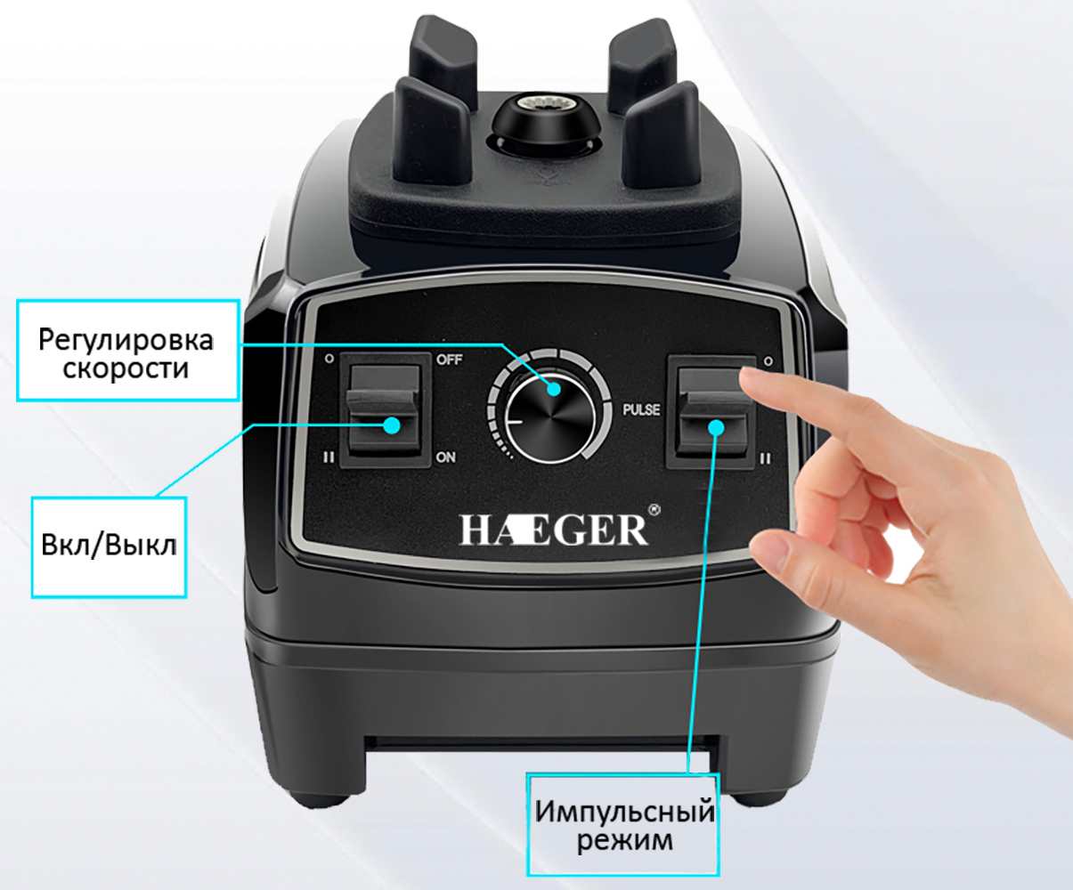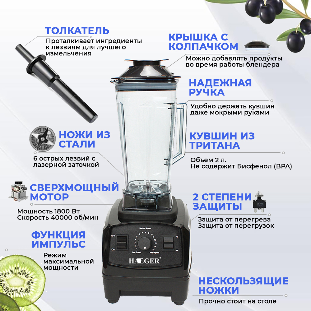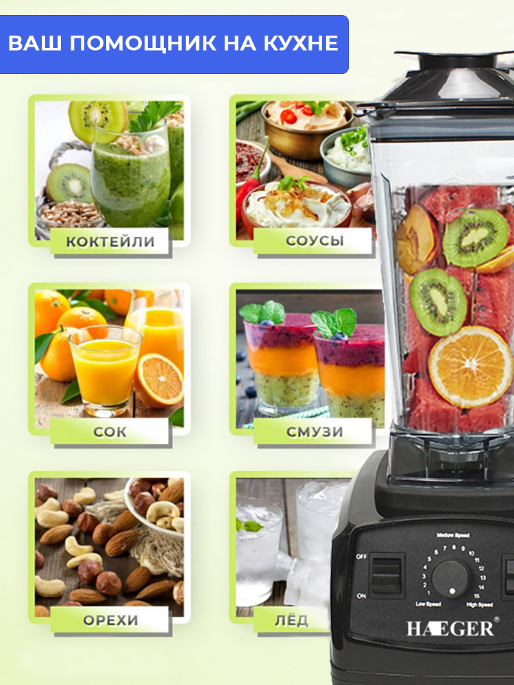 Стационарный блендер HAEGER HG-2801/ для смузи / 1800 Вт / 15 скоростей /, черный