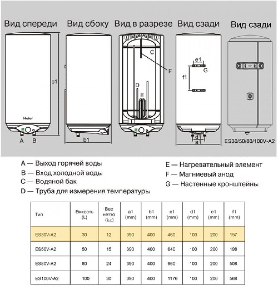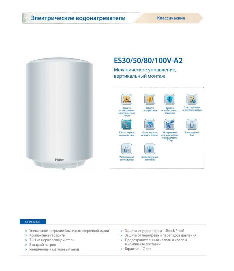 Водонагреватель накопительный электрический Haier ES100V-A2 1,5кВт, белый