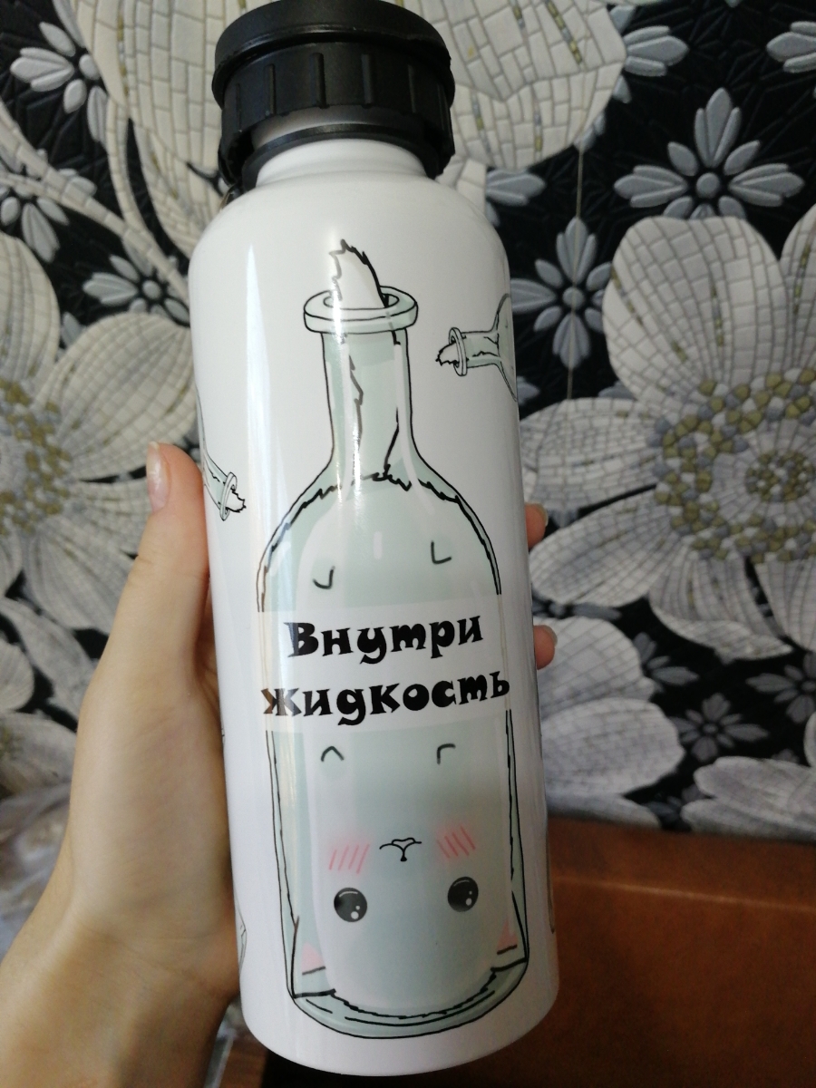 Спортивная бутылка HandArtStudio Толстые котики 500мл, бежевый