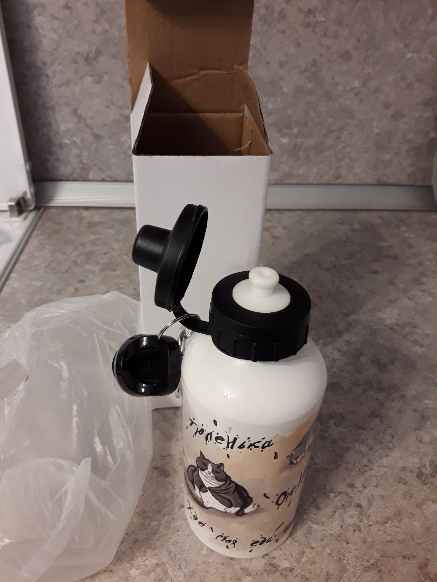 Спортивная бутылка HandArtStudio Толстые котики 500мл, бежевый