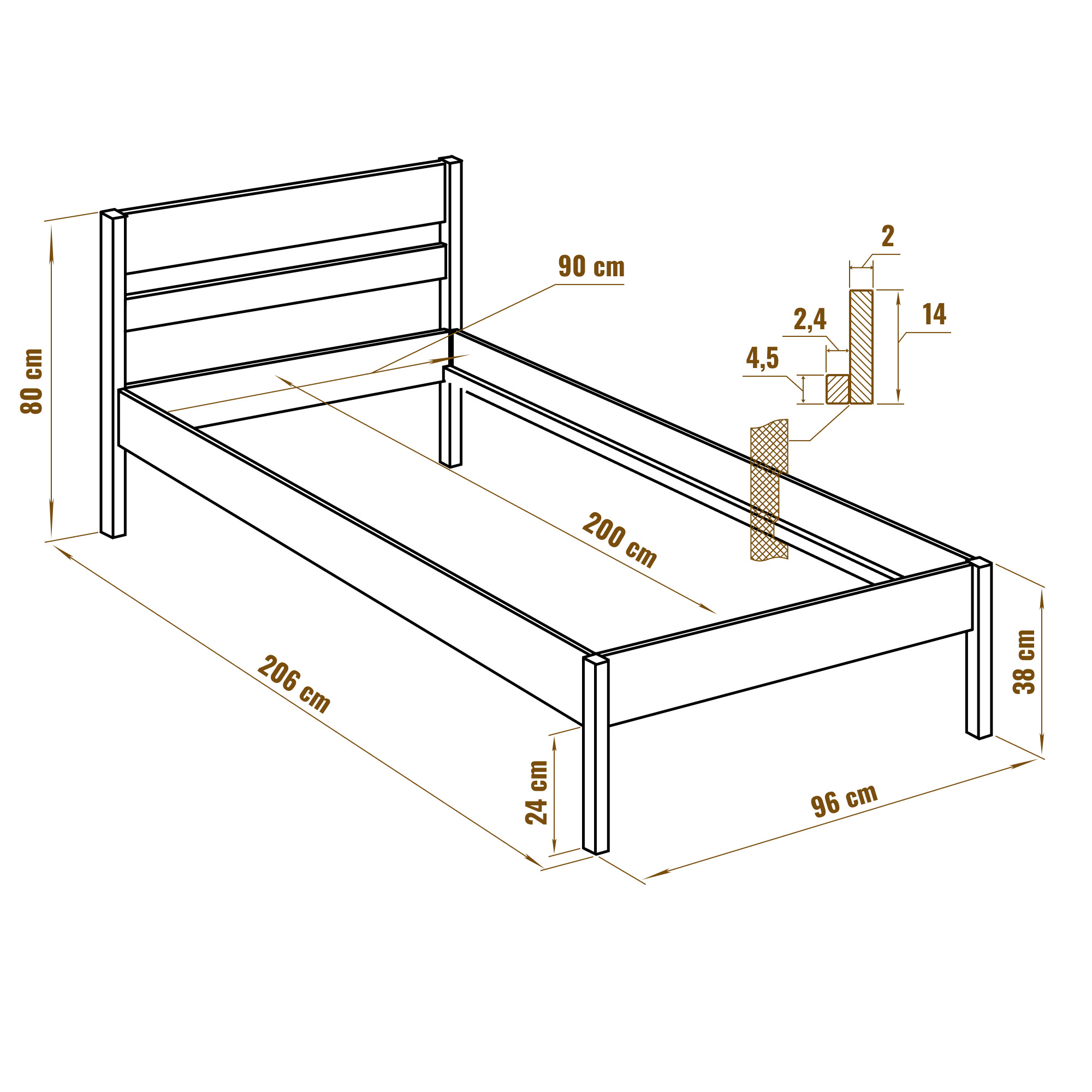 Кровать односпальная 80x200 см из массива дерева Hansales