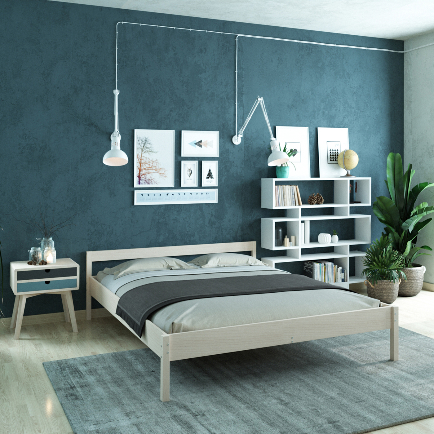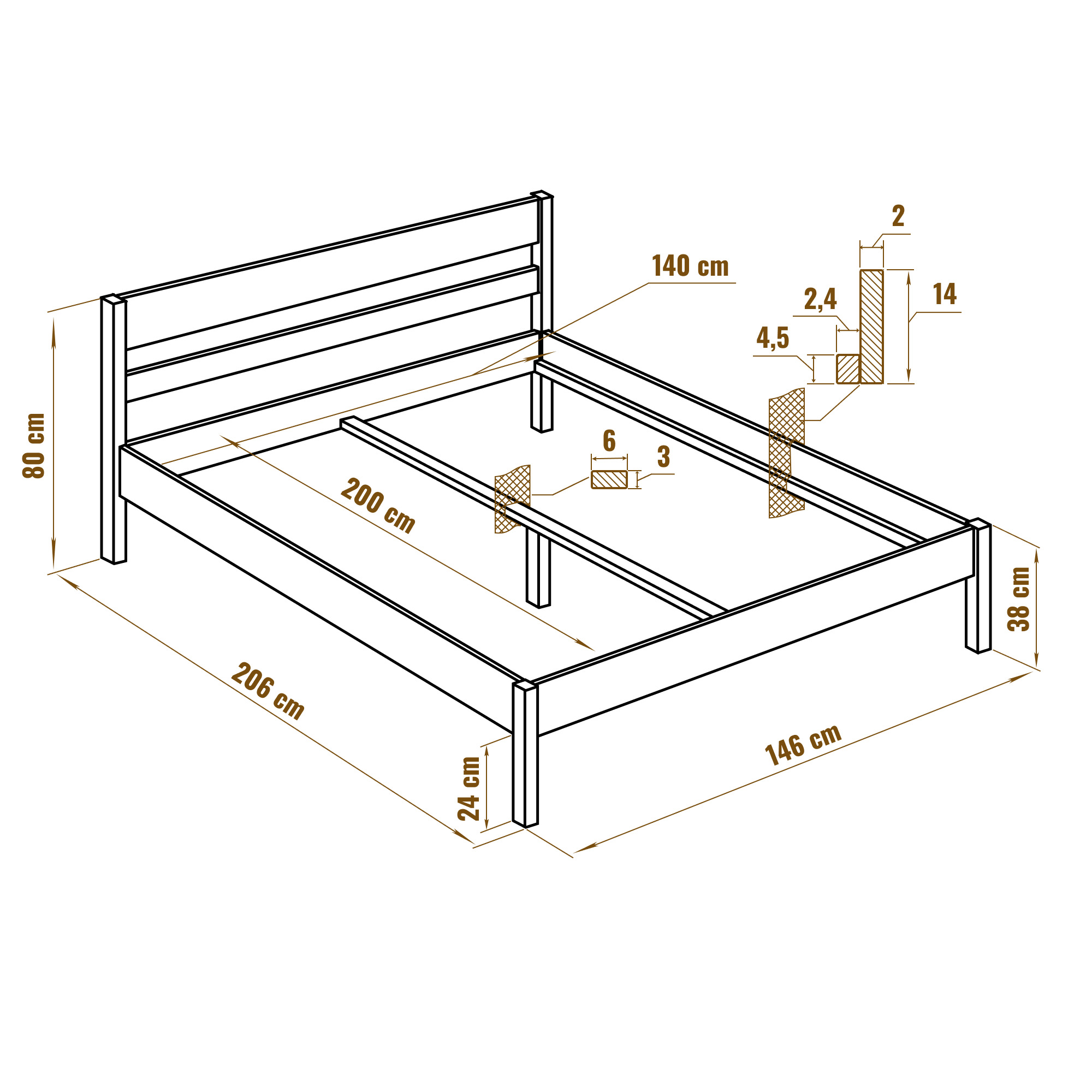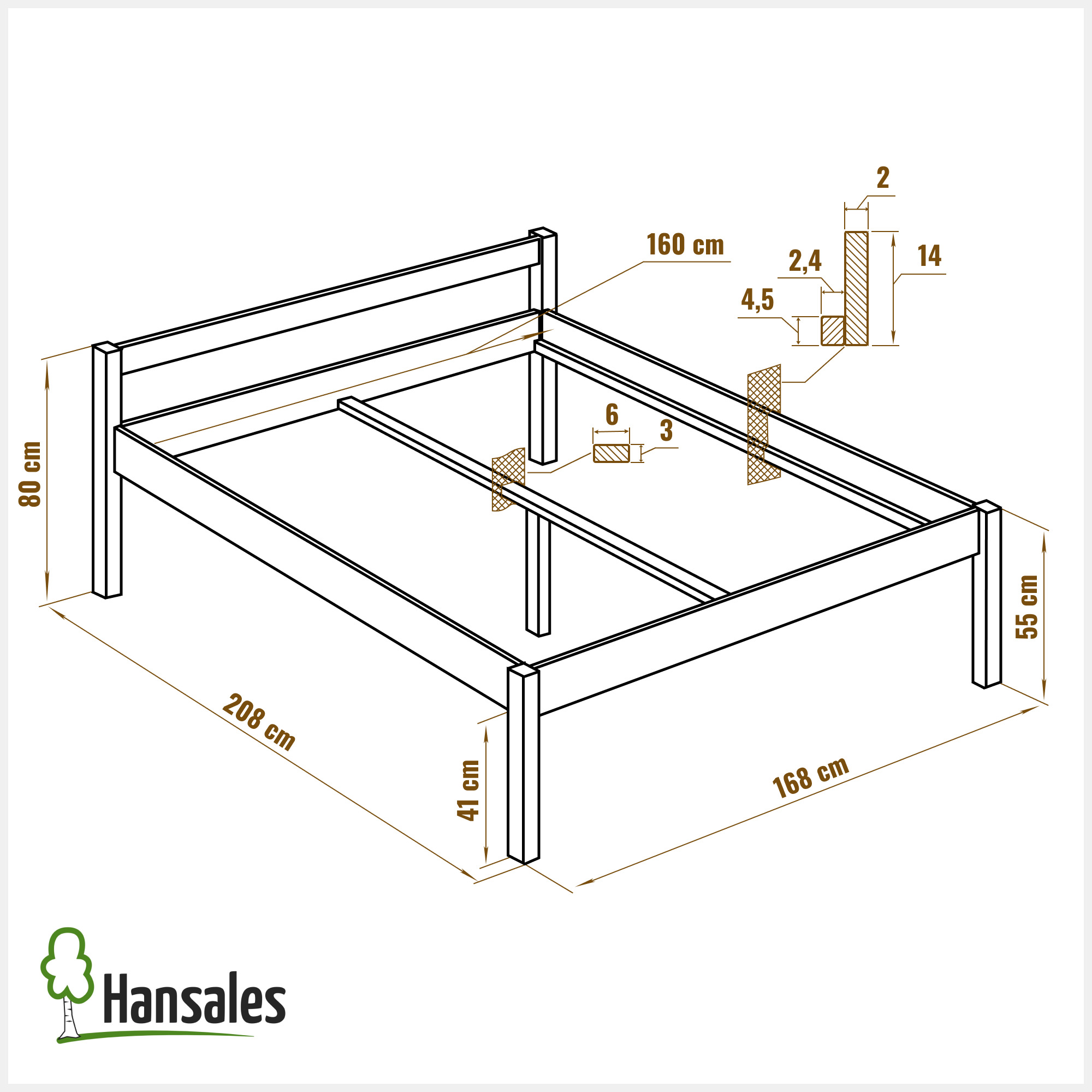 Кровать двуспальная 140x200 см из массива дерева Hansales