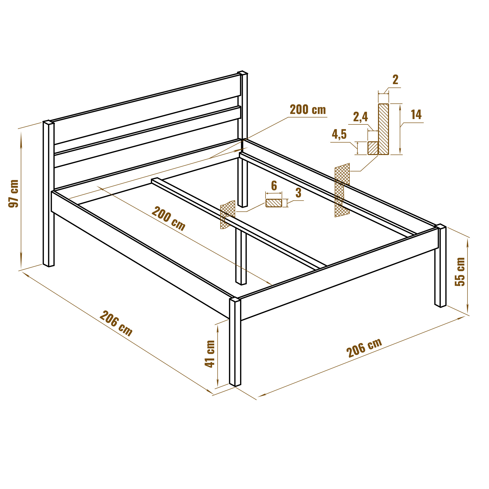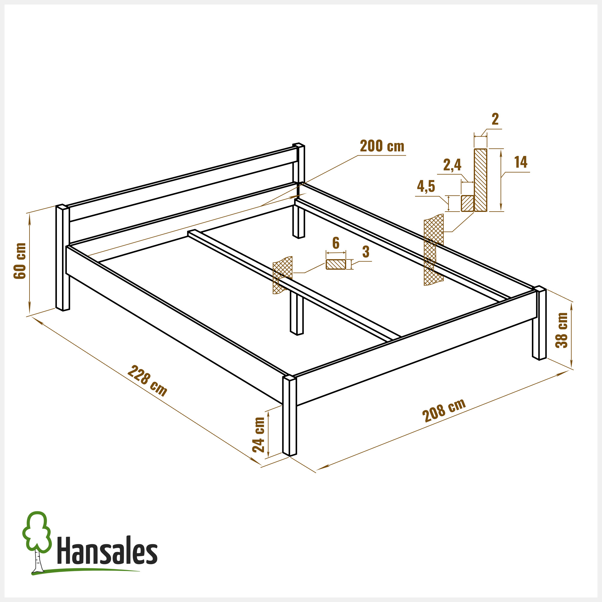 Двуспальная кровать, Каркас кровати RLBED200, 200х200 см, Hansales