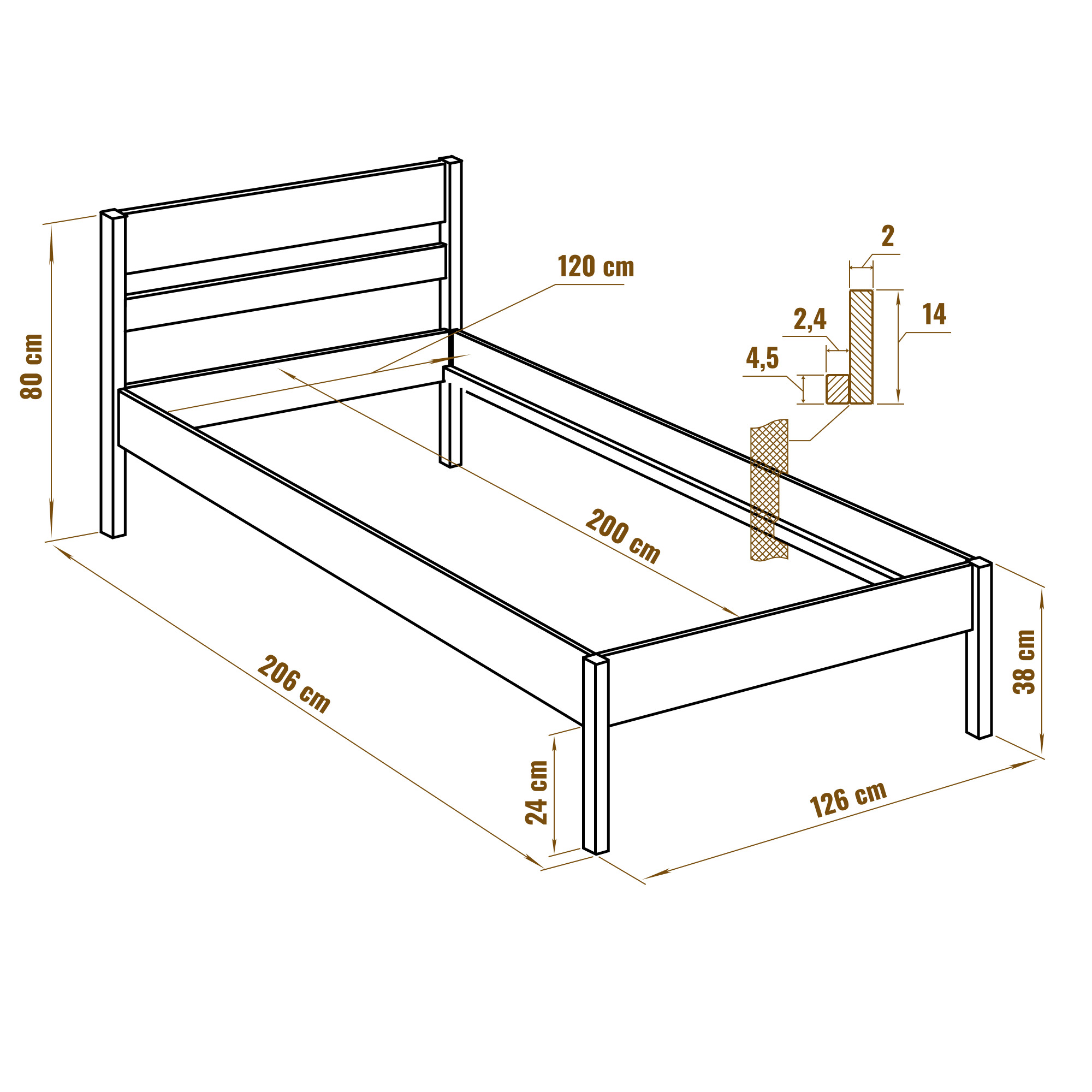 Кровать односпальная 120x200 см из массива дерева Hansales