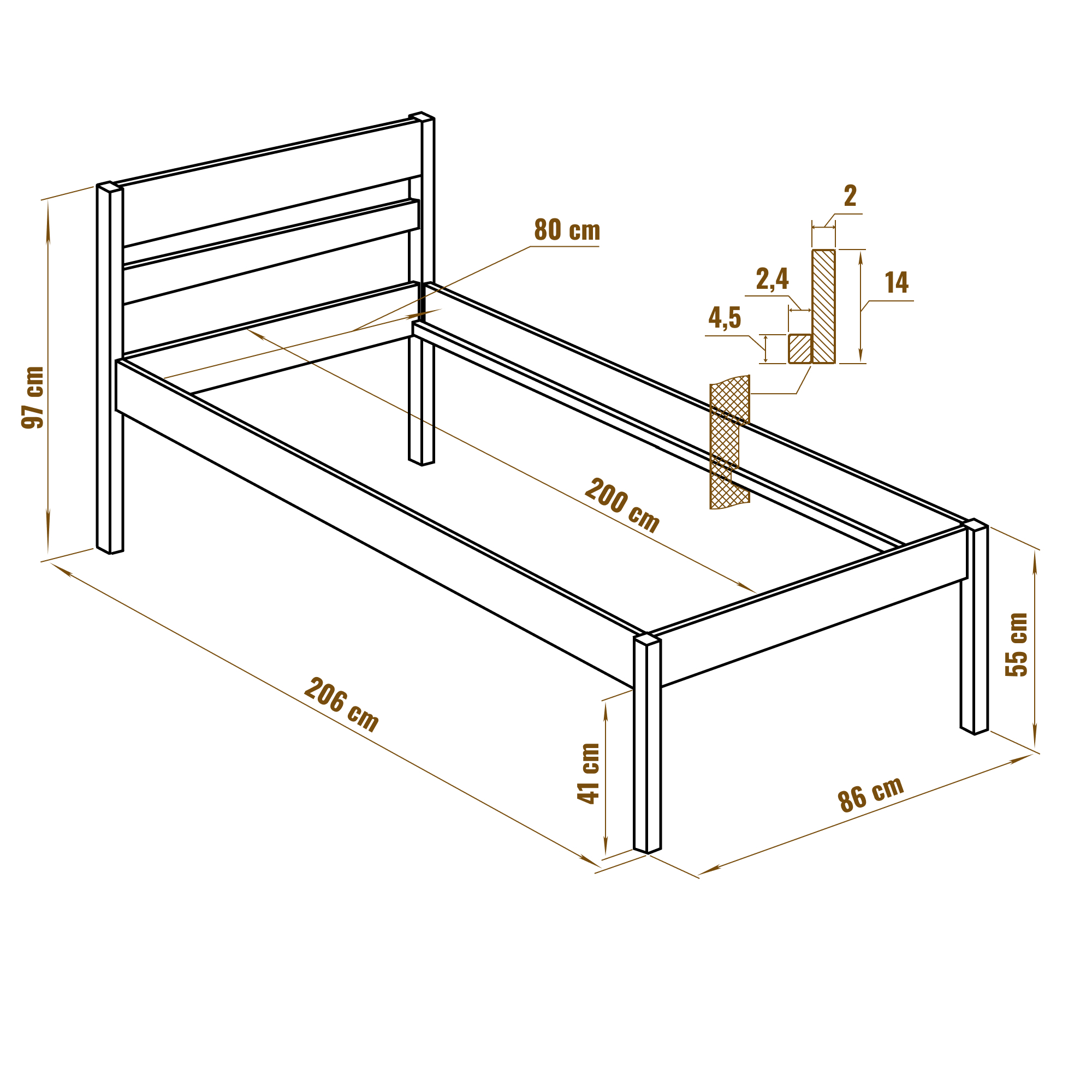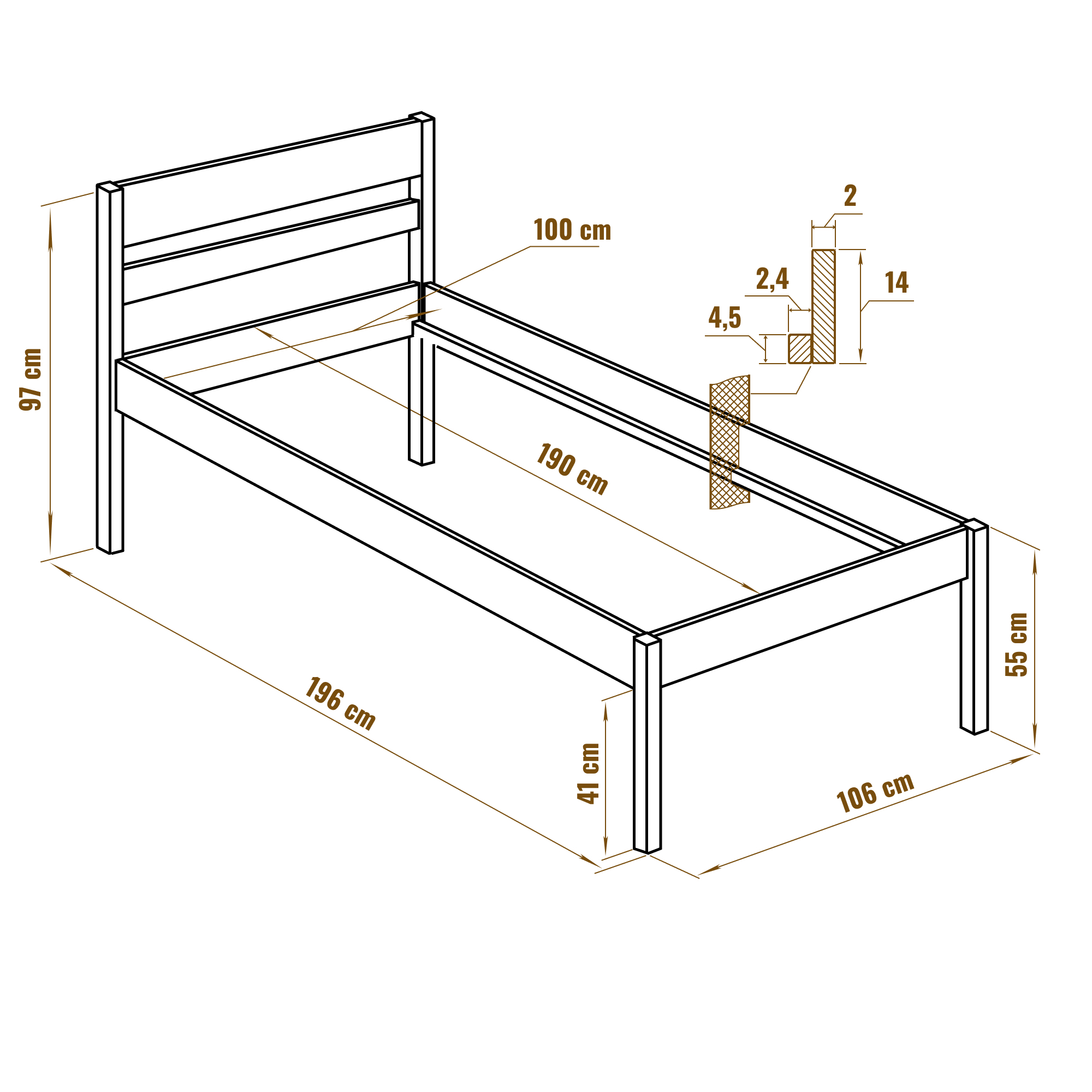 Односпальная кровать, Каркас кровати RHBED100, 100х200 см, Hansales